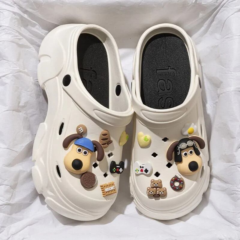大人気 サンダル 飾り付き 夏 レディース かわいい 8cm厚底 クロックス サンダル 漫画のアクセサリー ファッションサンダル 3色