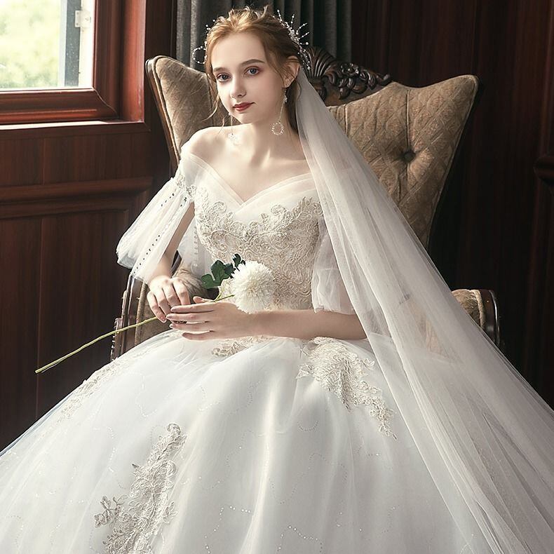 結婚式 ドレス ウェディング ベール ロングドレス パニエ付き プリンセスラインドレス ステージ衣装 パーティードレス ウェディングドレス 発表会 二次会 花嫁 ホワイト