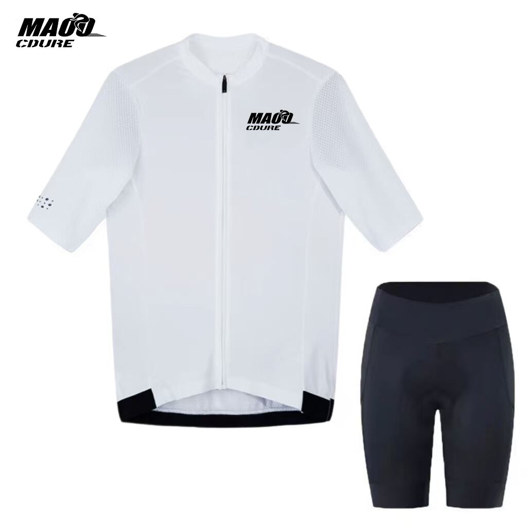 MAOI CDURE サイクルジャージ メンズ 上下セット 半袖 吸汗速乾 ストレッチ素材 軽量 通気性 高伸縮性 フルジップ パッド付きパンツ ロードバイク用 夏用 スポーツウェア 自転車ウェア トレーニング用