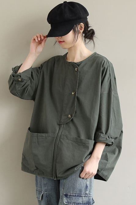 スプリングコート トレンチコート ショートコート ジャケット レディース 春 コート アウター ゆったり ショート丈 グリーン
