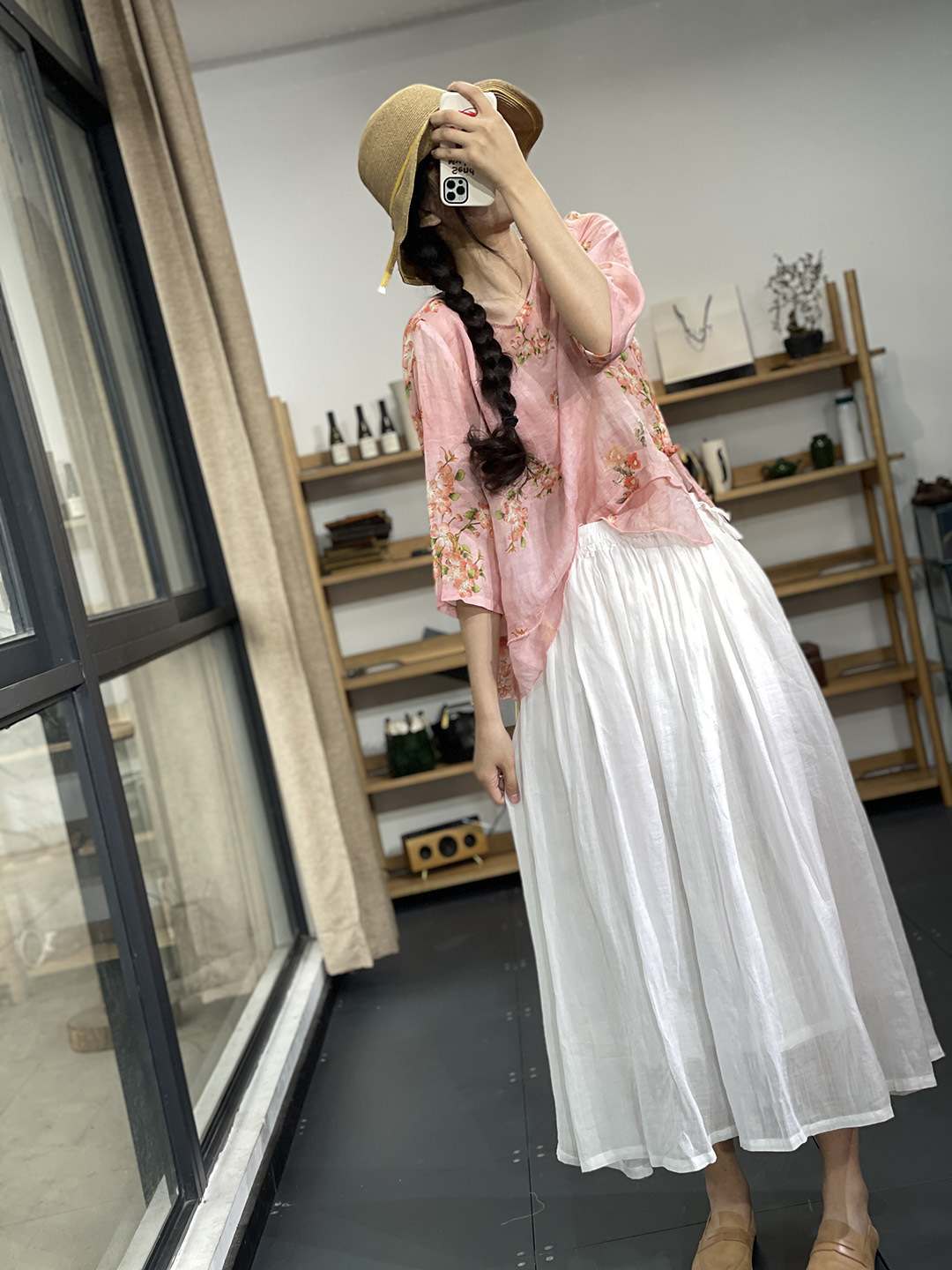 軽やかな素材感で、歩くたびに優しく揺れるシルエットが女性らしさを引き立てます。