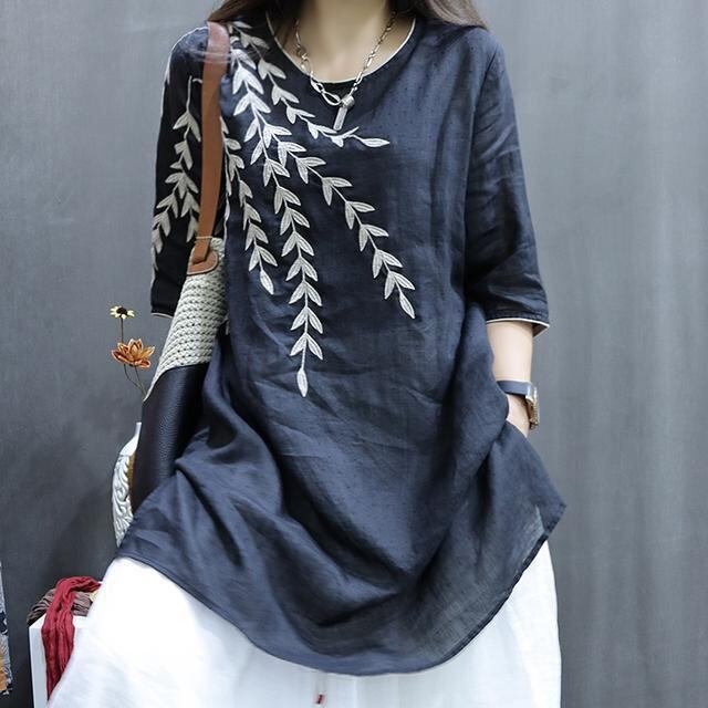 Tシャツ 夏用 綿麻 中丈 スカート ワイドフィット レディース おしゃれ 半袖 シャツ カジュアル 通気性 旅行用 お出かけ 大きいサイズ ブラック グレー