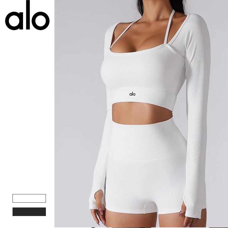 アロヨガ レディース フィットネス ウェア 上下セット Alo Yoga ショートパンツ 長袖 T シャツ 胸パッド付き ランニング スポーツフィットネス