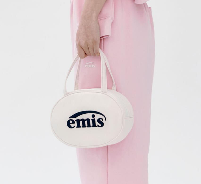 emis イミス ロゴ入り トートバッグ ボストン 円形バッグ 韓国 大人気 通勤 通学 軽量 ホワイト