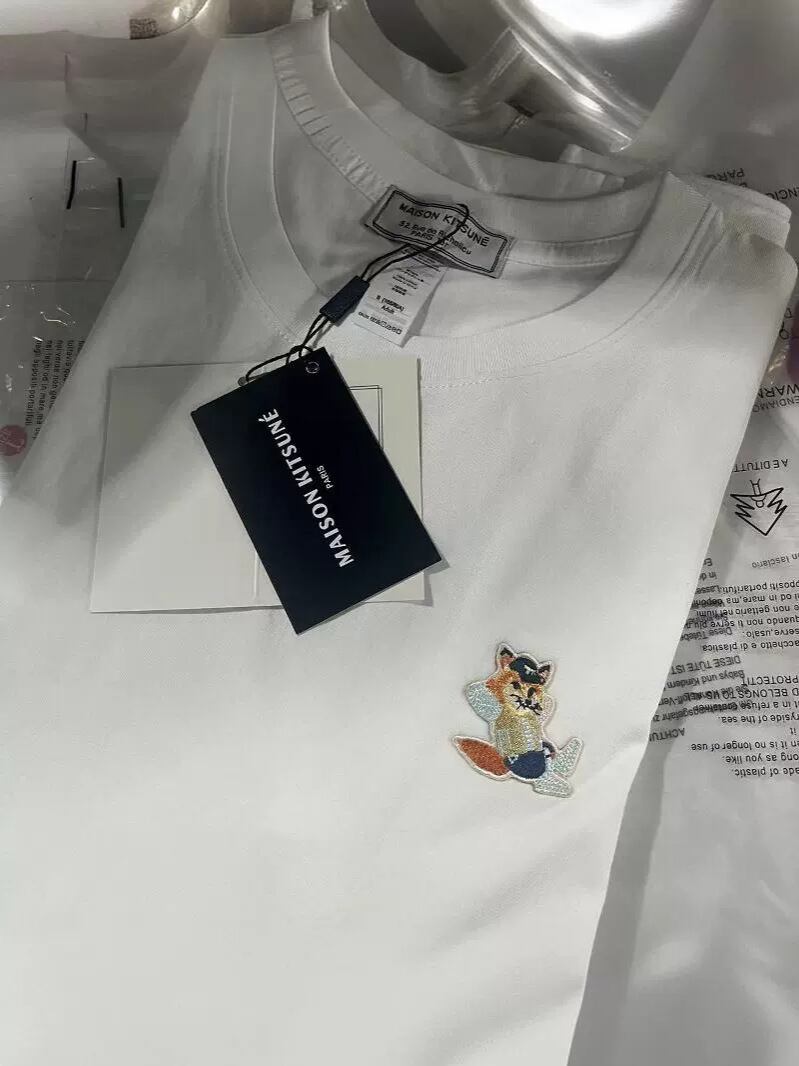 MAISON KITSUNÉ メゾンキツネ Tシャツ 夏 人気 半袖 フォックスヘッド ロゴ Tシャツ ホワイト 男女兼用 カジュアル 刺繍 トップス