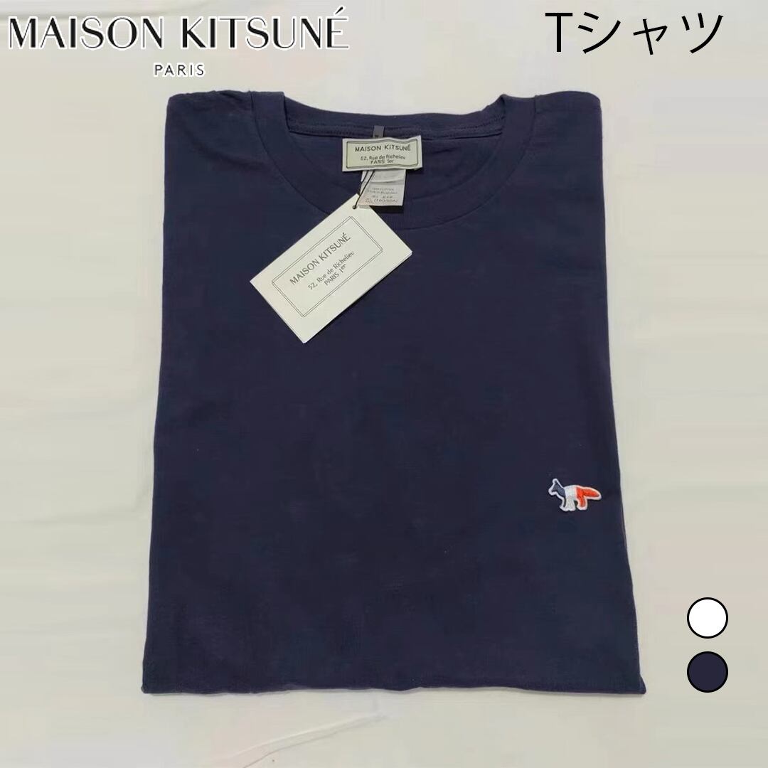 MAISON KITSUNÉ メゾンキツネ Tシャツ 半袖 フォックスヘッド ロゴ Tシャツ カジュアル 夏 人気 半袖 メンズ レディース 男女兼用 ホワイト ネイビー
