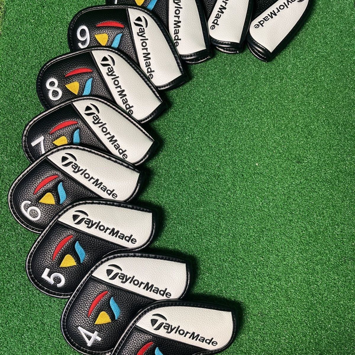 TaylorMade Golf テーラーメイド ゴルフ アイアンカバー マグネット ヘッドカバーセット 10枚セット 高級感 着脱らくらく ゴルフ クラブ ヘッドカバー ホワイト+ブラック