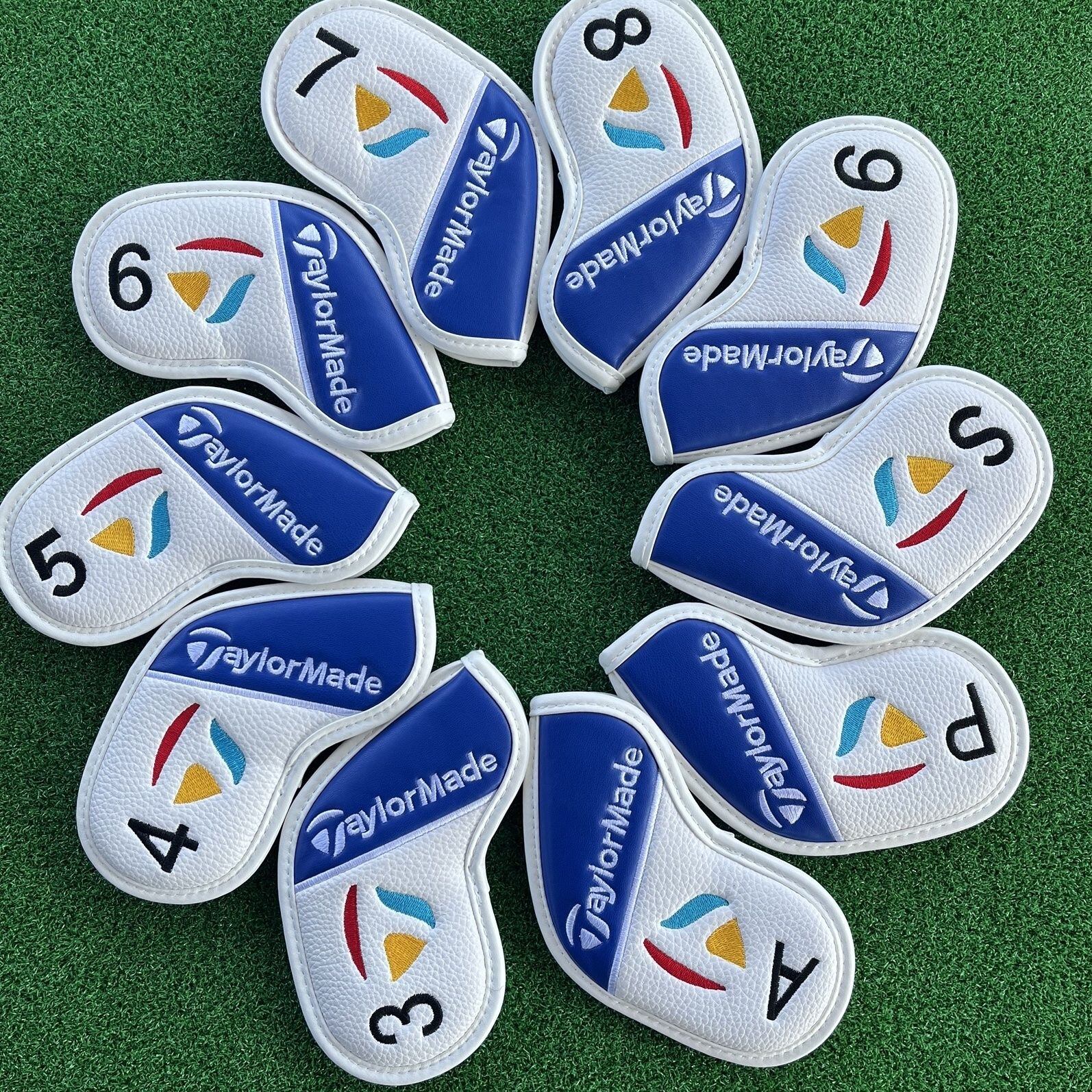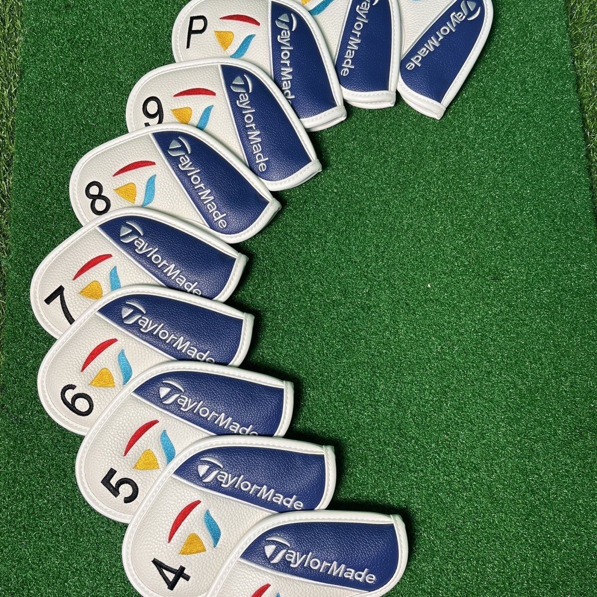 TaylorMade Golf テーラーメイド ゴルフ アイアンカバー マグネット ヘッドカバーセット 10枚セット 高級感 着脱らくらく ゴルフ クラブ ヘッドカバー ホワイト+ブルー