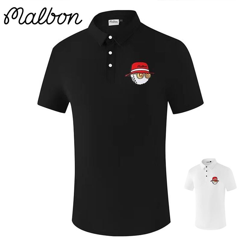malbon golf マルボンゴルフ ポロシャツ LOGO ロゴ シンプル 半袖 Tシャツ メンズ 韓国 ゴルフ ゆったり カジュアル ポロシャツ ホワイト ブラック
