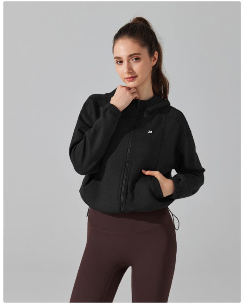 Alo Yoga アロヨガ ジャケット フィットネス トレーニング トップス ランニング ジッパー パーカー スポーツ 長袖 レディース ブラック ホワイト 春秋 ヨガ