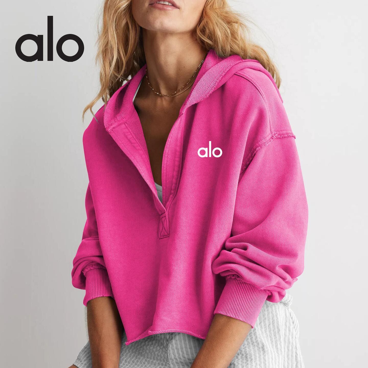 Alo Yoga アロヨガ スウェットシャツ Vネック 長袖 ダークグレー ピンク ベージュ スポーツウェア ヨガ パーカー