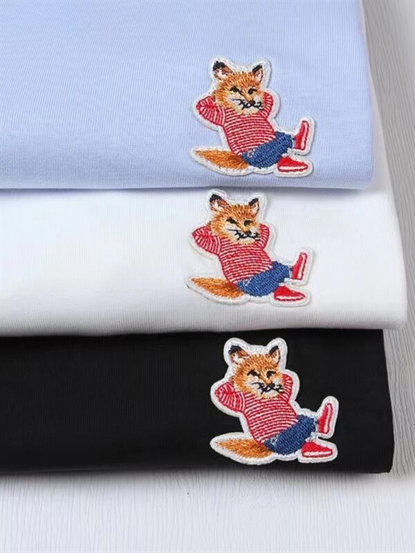 胸元には可愛らしい狐の刺繍が施され、カジュアルなスタイルに華を添えます。