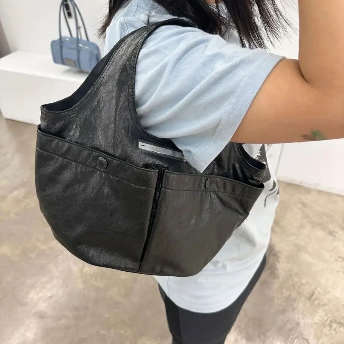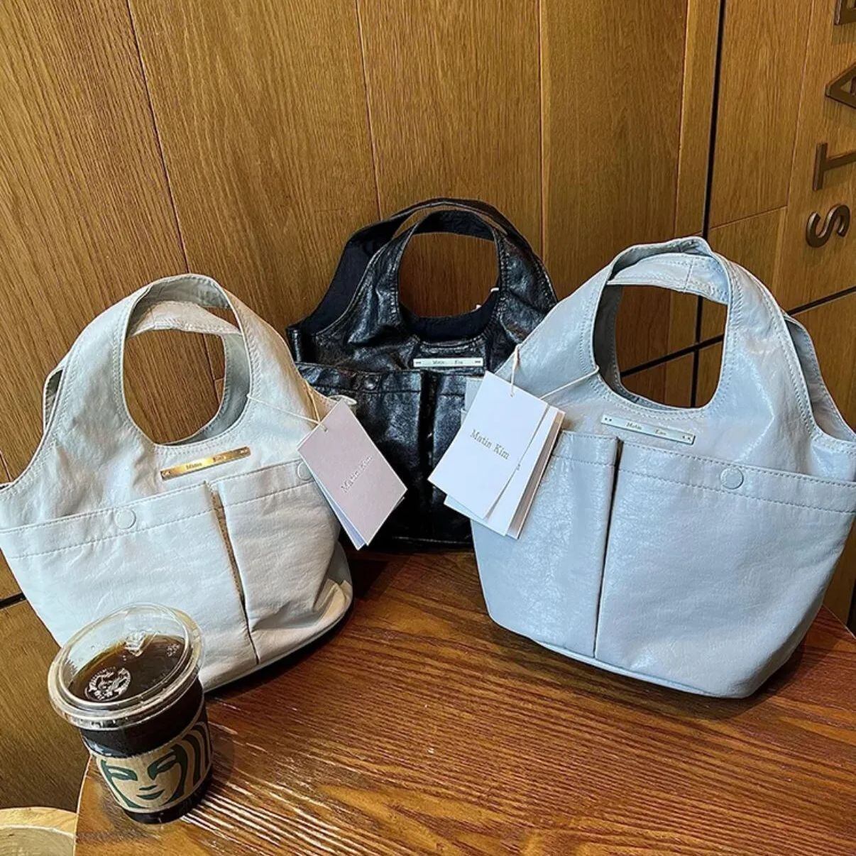 新品 韓国 Matin Kim マーティンキム DOUBLE POCKET WRINKLE TOTE BAG トートバッグ ハンドバッグ ショルダーバッグ レディース 【2色選択可能】