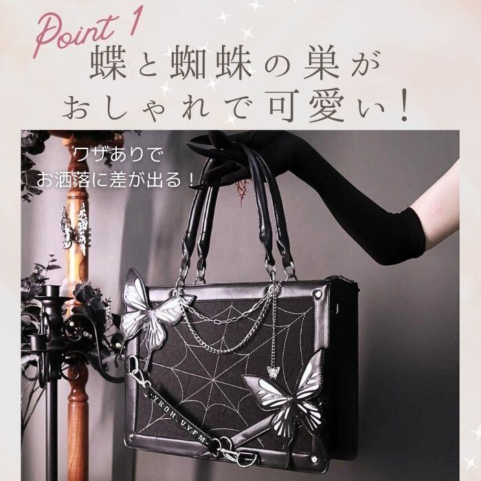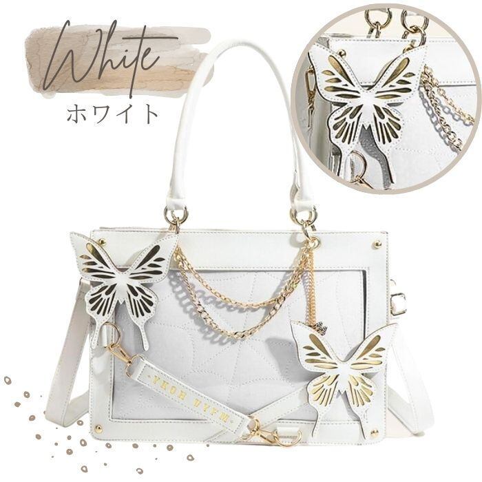 痛バッグ 痛バ 蝶 ゴシック ショルダー トート 蜘蛛の巣 バタフライ アゲハ くもの巣 2WAY 推し活バッグ いたばっく いたば トートバッグ ショルダーバッグ ハンドバッグ 黒 白 ブラック ホワイト レザー調 チェーン ゴスロリ おしゃれ かわいい
