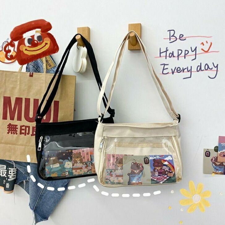 送料無料 痛バック ミニ いたばっく いたば ショルダーバッグ 大人 ブラック ホワイト ぬいぐるみ アクスタ キャンバス ビニール オシャレ 可愛い ギフト 学生
