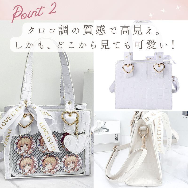 ☆ クロコ柄とハートのバックルのデザインが可愛いトートタイプの痛バッグ です。 トート・ショルダーの2WAYで利用できて使い勝手も抜群です◎ いずれも取外し可能です。