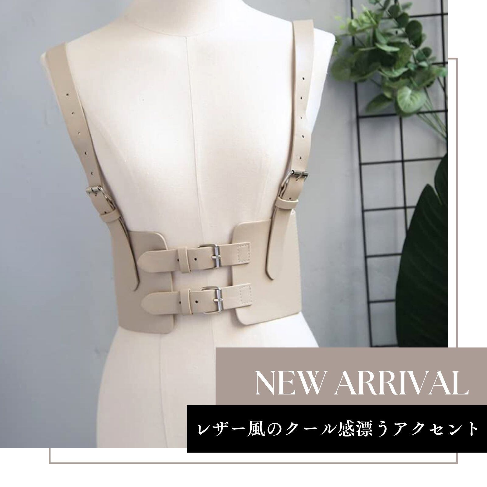 ☆ 今季大注目のトレンドITEM! レザーが高級感を醸し出しながら、コルセット風な形状が少女らしい可愛さを漂わせる 大人リッチなハーネスベルトです。
