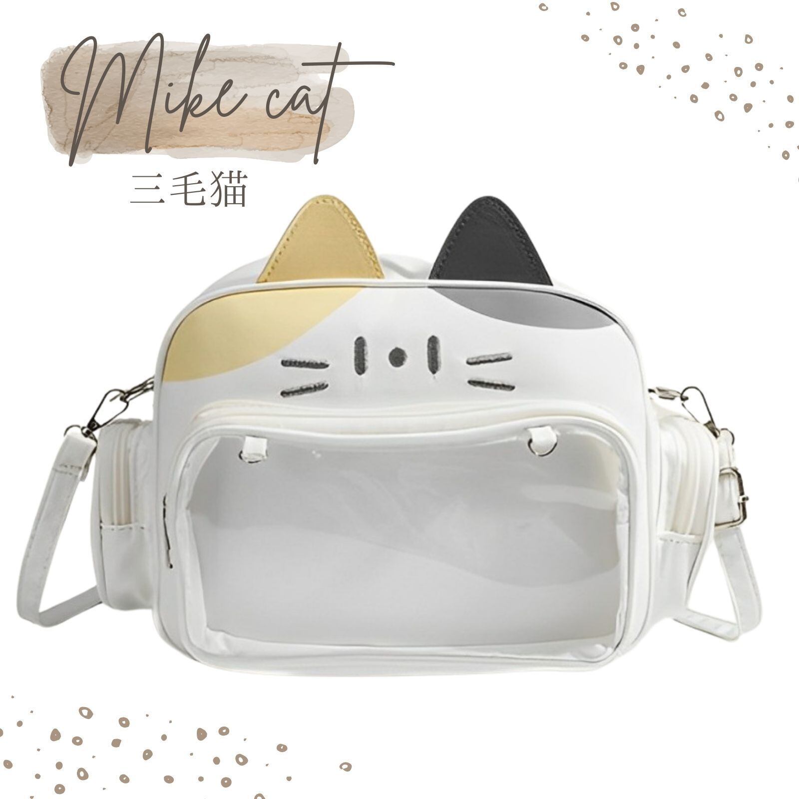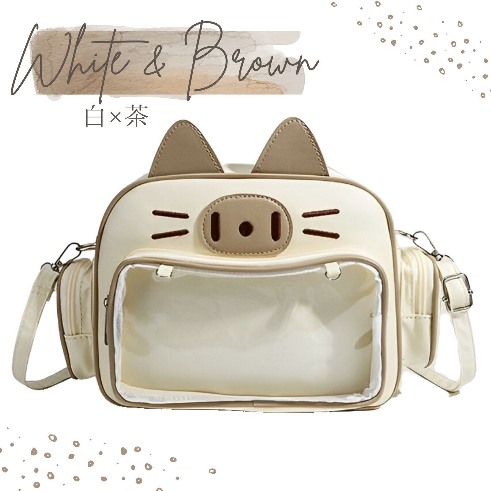 送料無料 にゃんこ 痛バッグ 痛バ ショルダー 痛バック ショルダーバッグ かわいい 透明 ビニール おたく 黒 白 ブラック ホワイト ブラウン 推し活 オタ活 推し バッグ バック