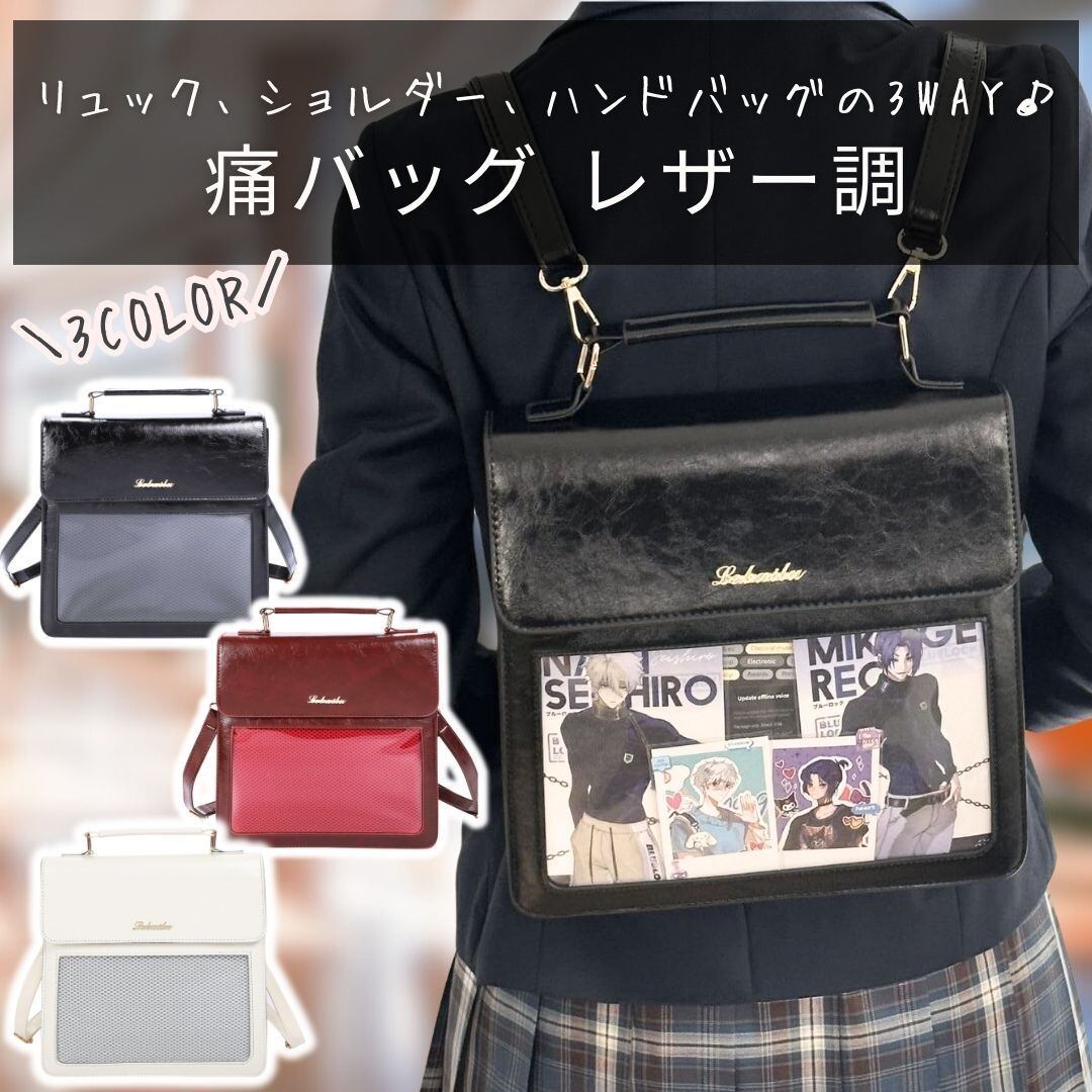 痛バッグ リュック ショルダー ハンドバッグ 3WAY 痛バ 推し活リュック 痛リュック ブラック ホワイト レッド ワインレッド オタ活 推し活 推し活バッグ かわいい おしゃれ レザー調