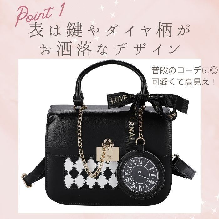 痛バッグ 小さめ 2WAY 痛バ 推しバッグ ショルダー 隠せる 普段使い ミニ ハンドバッグ ショルダーバッグ 黒 白 ブラック ホワイト 推しごとバッグ おしゃれ かわいい 推し活 プレゼント 大人 レザー調 鍵 チェーン アリス ゴシック ロリータ