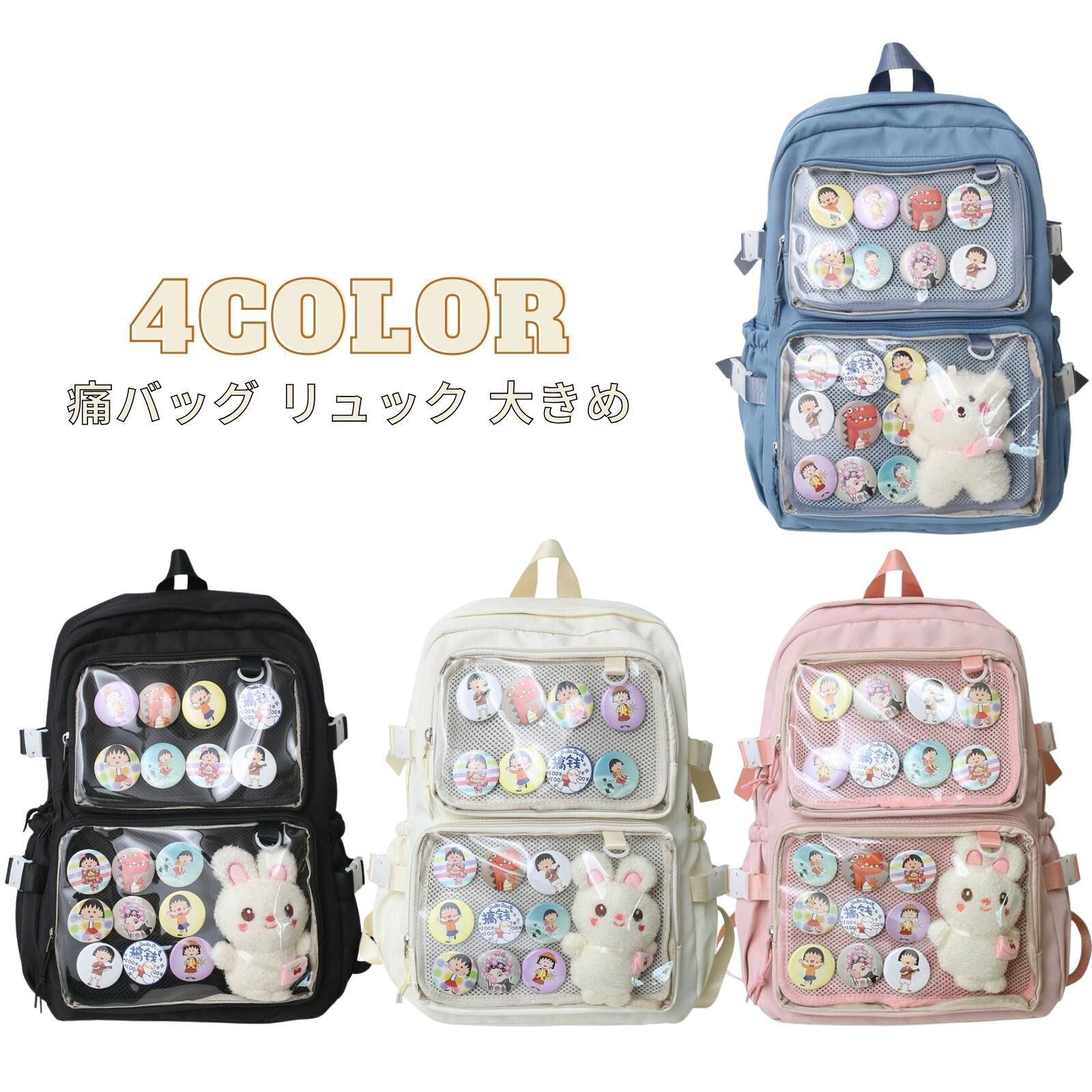 痛リュック 痛バ リュック 痛バッグ 大きめ 痛バック バックパック リュックサック A4 大容量 2段 シンプル 黒 白 水色 ブラック ホワイト ピンク ブルー ゴシック ロリータ ゴスロリ 地雷系 量産型 かわいい おしゃれ 人気 プレゼント #