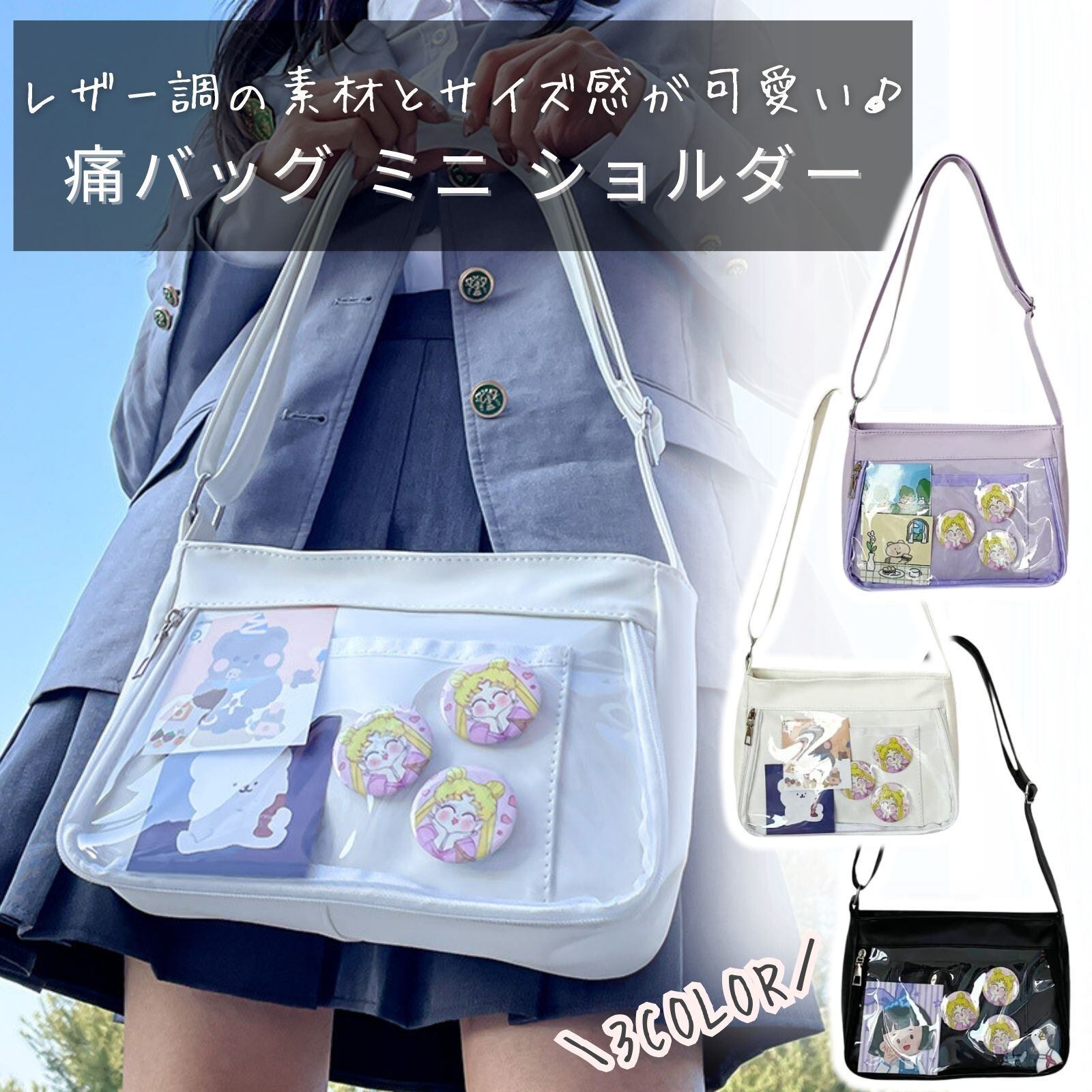 送料無料 痛バッグ 痛バ ショルダー 痛バック 小さめ ミニ ミニショルダー ショルダーバッグ かわいい 透明 ビニール おたく レディース メンズ ミニ痛バ オタク 小さい 痛包 かばん ぬいぐるみ ぬい 縫い包み 隠せる おしゃれ かわいい ブラック ホワイト パープル いたばっぐ
