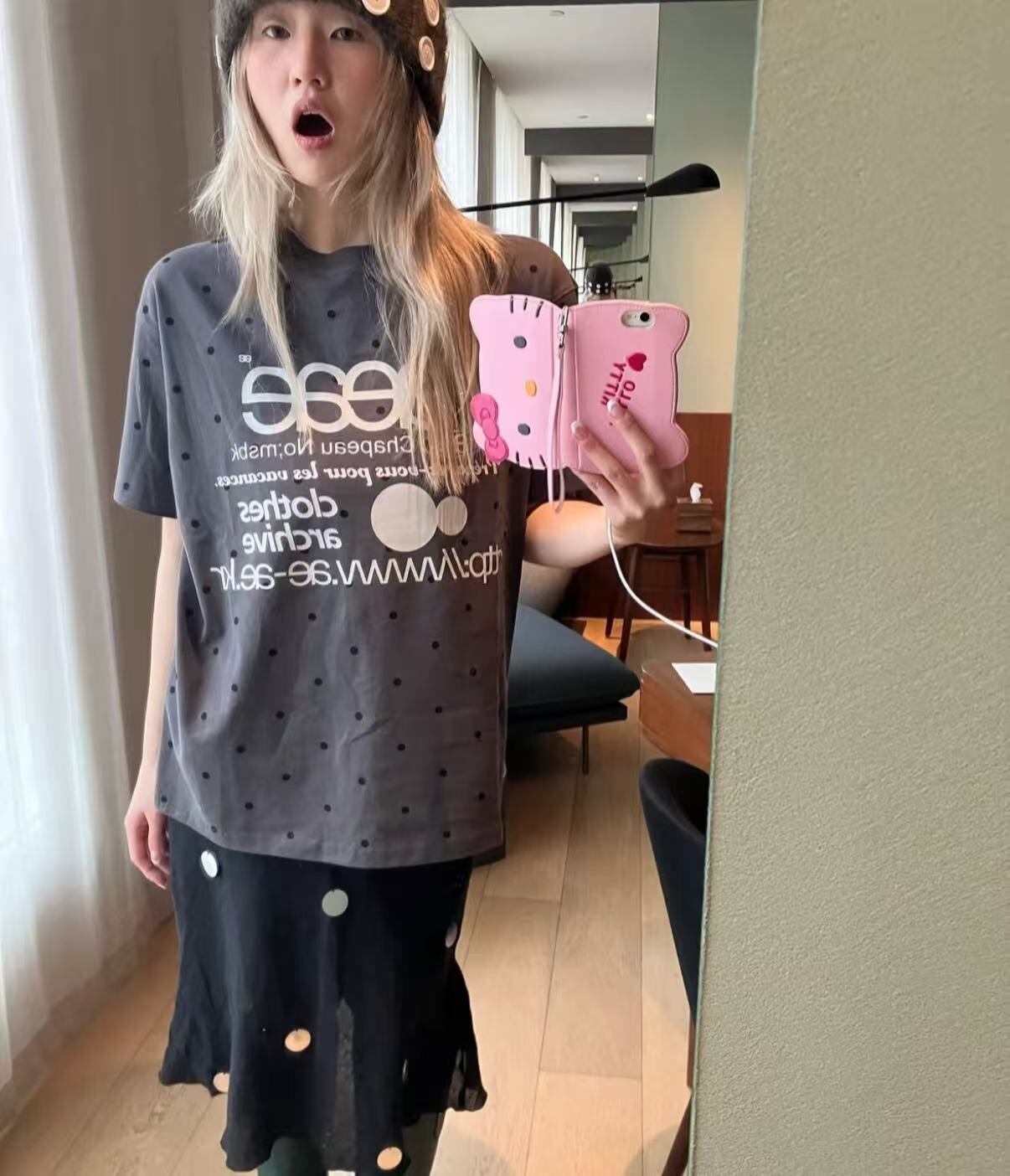 新品 韓国 AEAE エーイーエーイー WEB LOGO DOT T-SHIRTS 半袖 ロゴ 水玉 人気 半袖 Tシャツ リボン ファッション Y2K 人気 【2色選択可能】