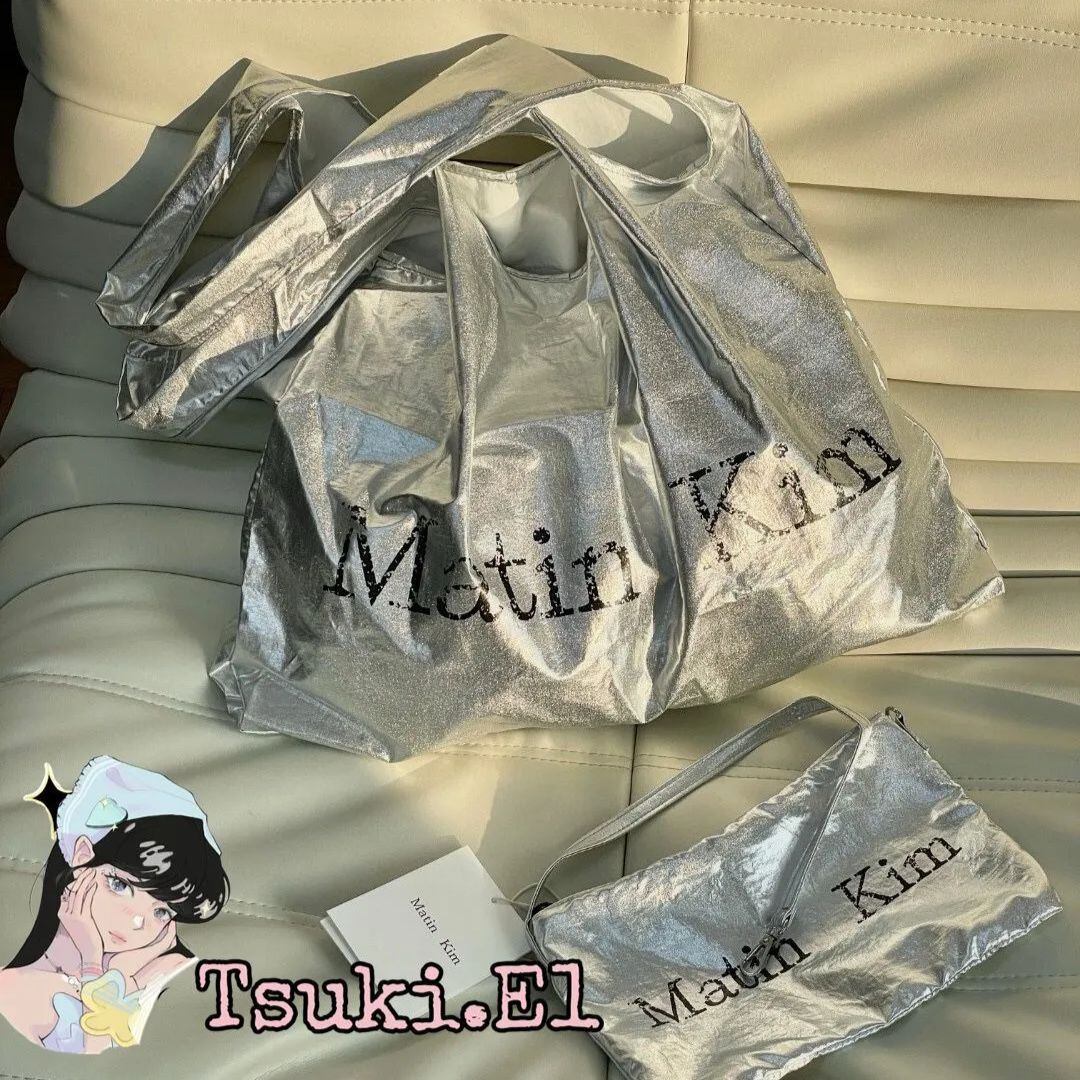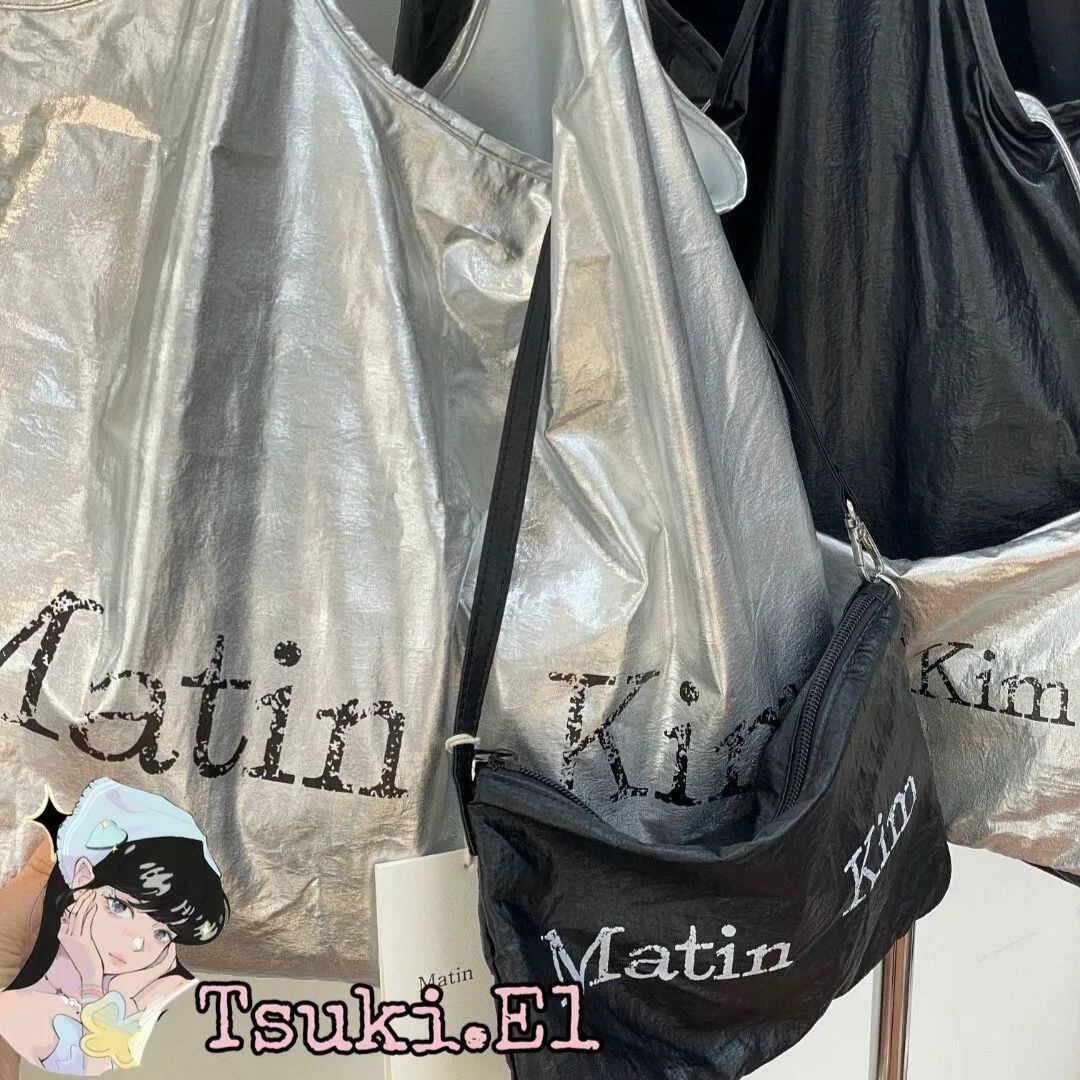 新品 韓国 Matin Kim マーティンキム CRACKED LOGO GLOSSY ECOBAG ハンドバッグ トートバッグ エコバッグ ショルダーバッグ 肩掛けバッグ 日常 通勤 レディース 【2色選択可能】