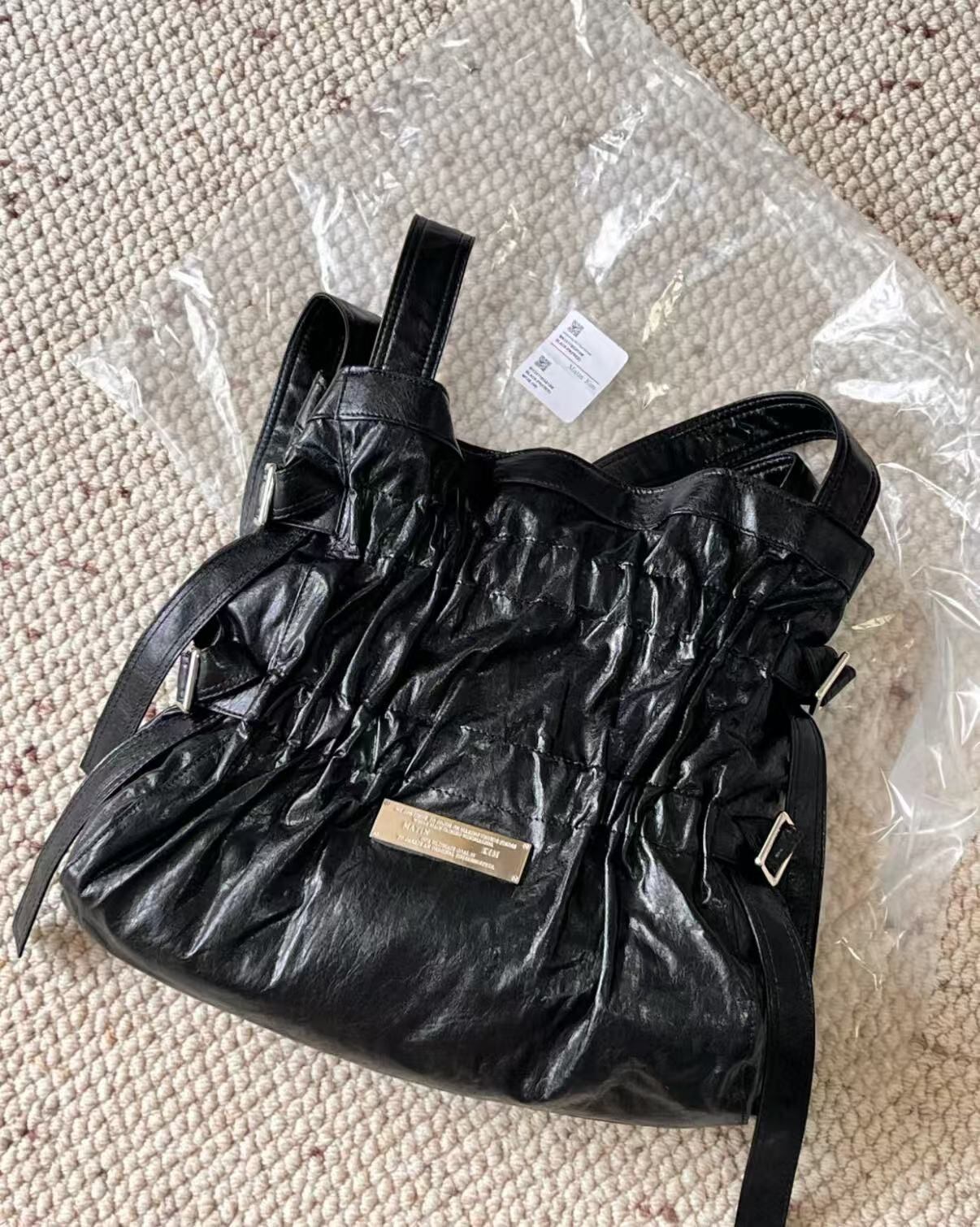 新品 韓国 Matin Kim マーティンキム ギャザーバッグ FAUX LEATHER SEASHELL BAG ハンドバッグ ショルダーバッグ レディース 【2色選択可能】