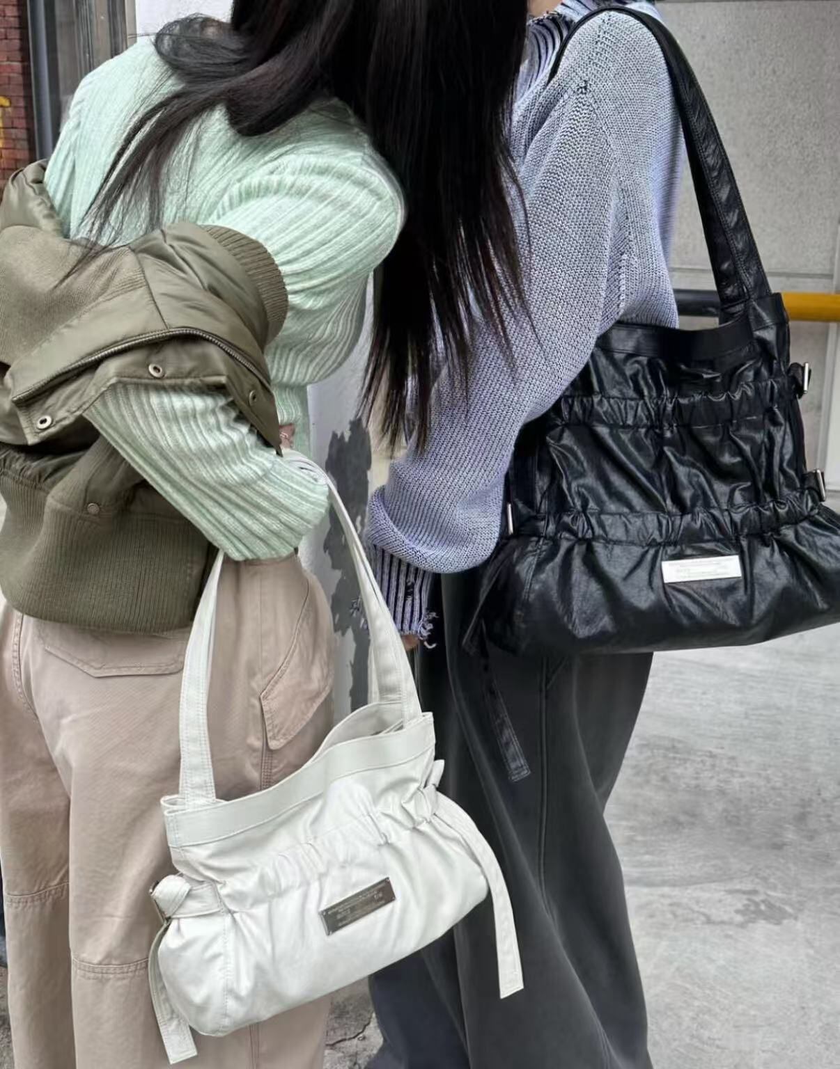 新品 韓国 Matin Kim マーティンキム ギャザーバッグ FAUX LEATHER SEASHELL BAG ハンドバッグ ショルダーバッグ レディース 【2色選択可能】