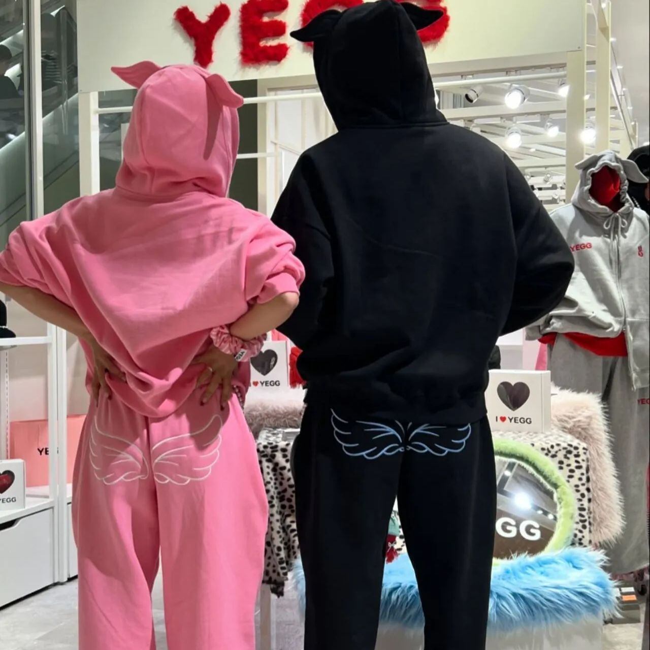 【上下セット】新品 韓国 YEGG イェグ Wing hoodie トップス パーカー スウェット パンツ 上下セット レディース ウィング柄 エンジェルウィング 長袖 秋冬服 カジュアル 【3色選択】
