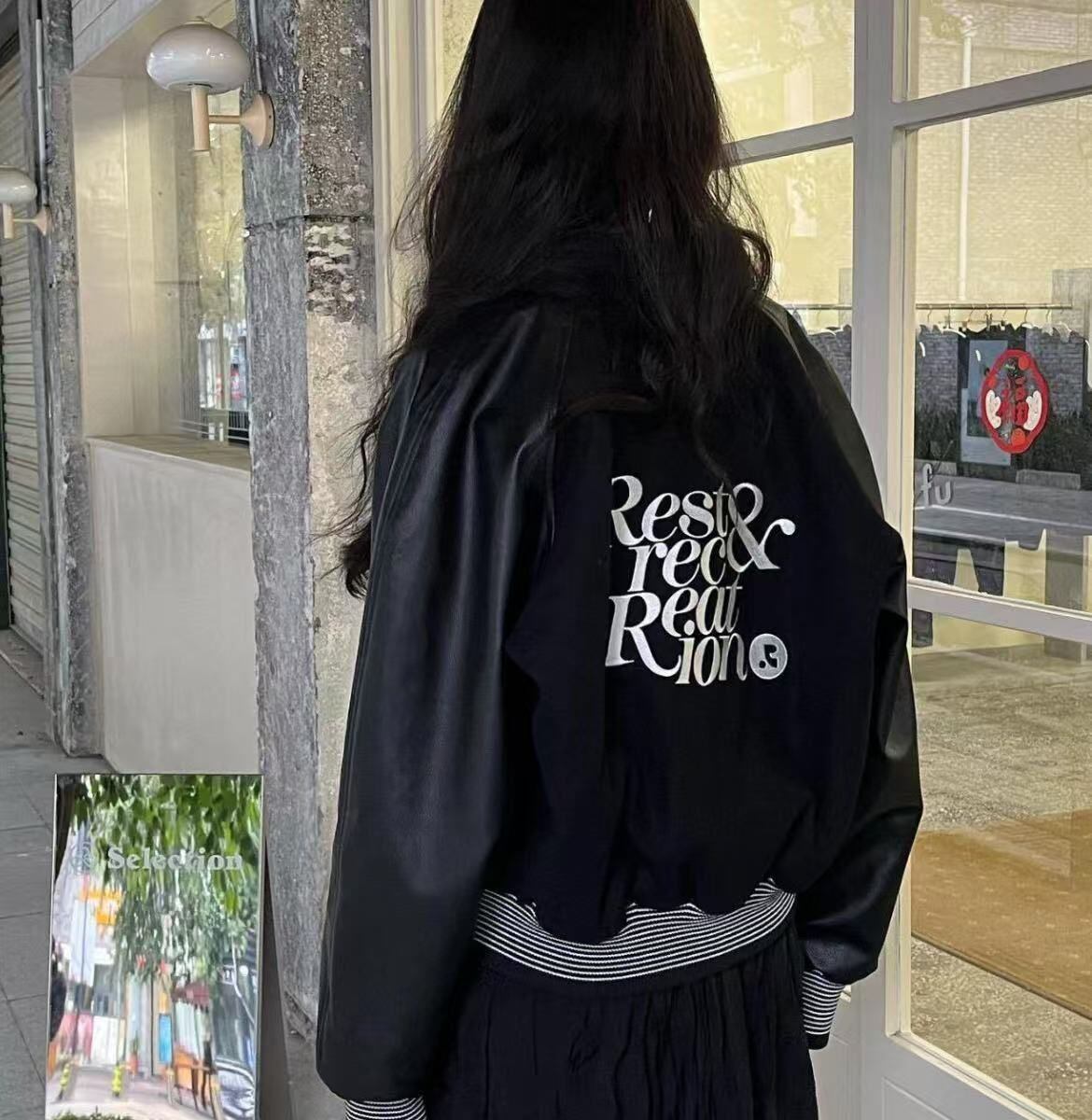 新品 韓国 Rest&Recreation RR LOGO バンバージャケット レタリング オーバーフィット 防風 ジャンパー ブルゾン 冬服 アウター ブラック