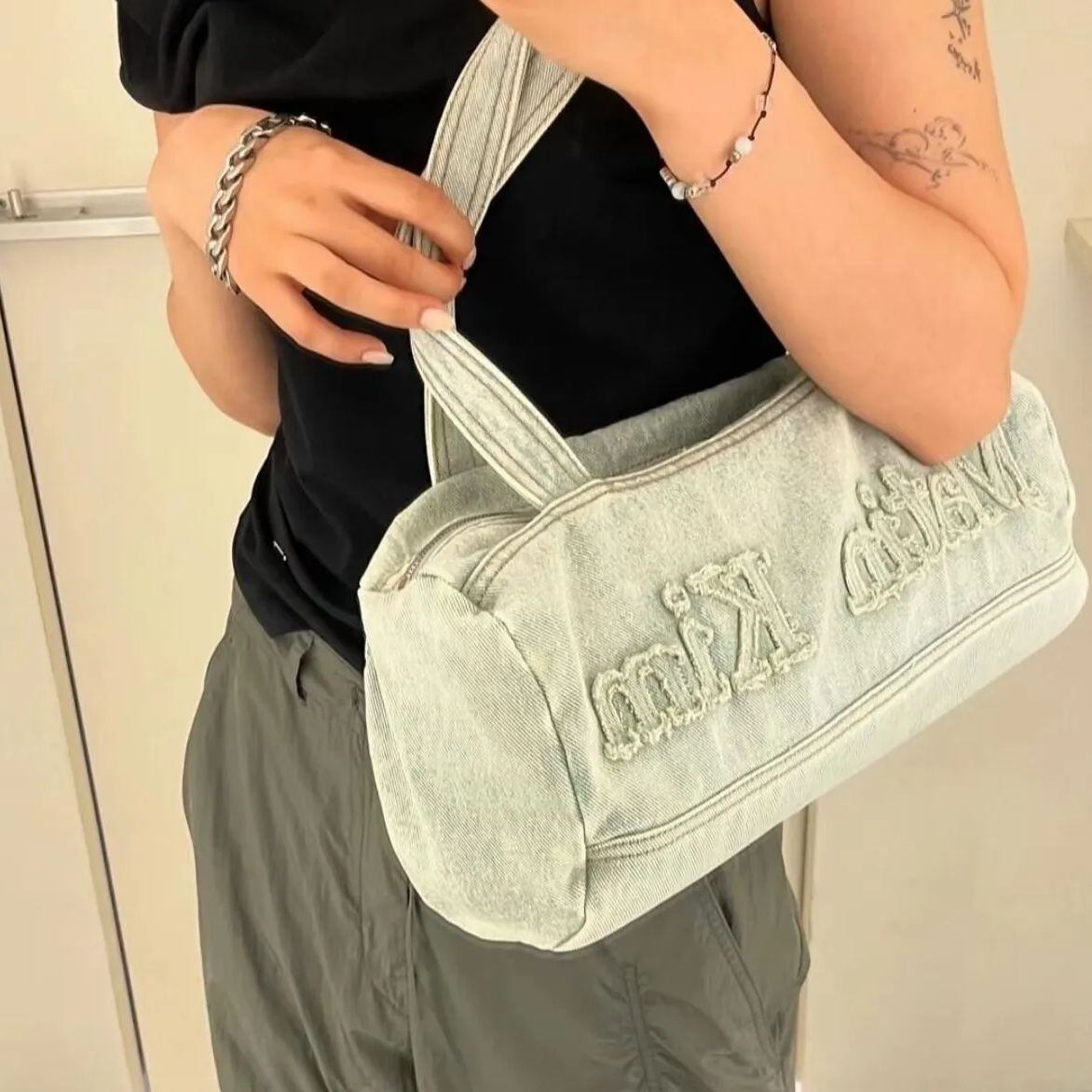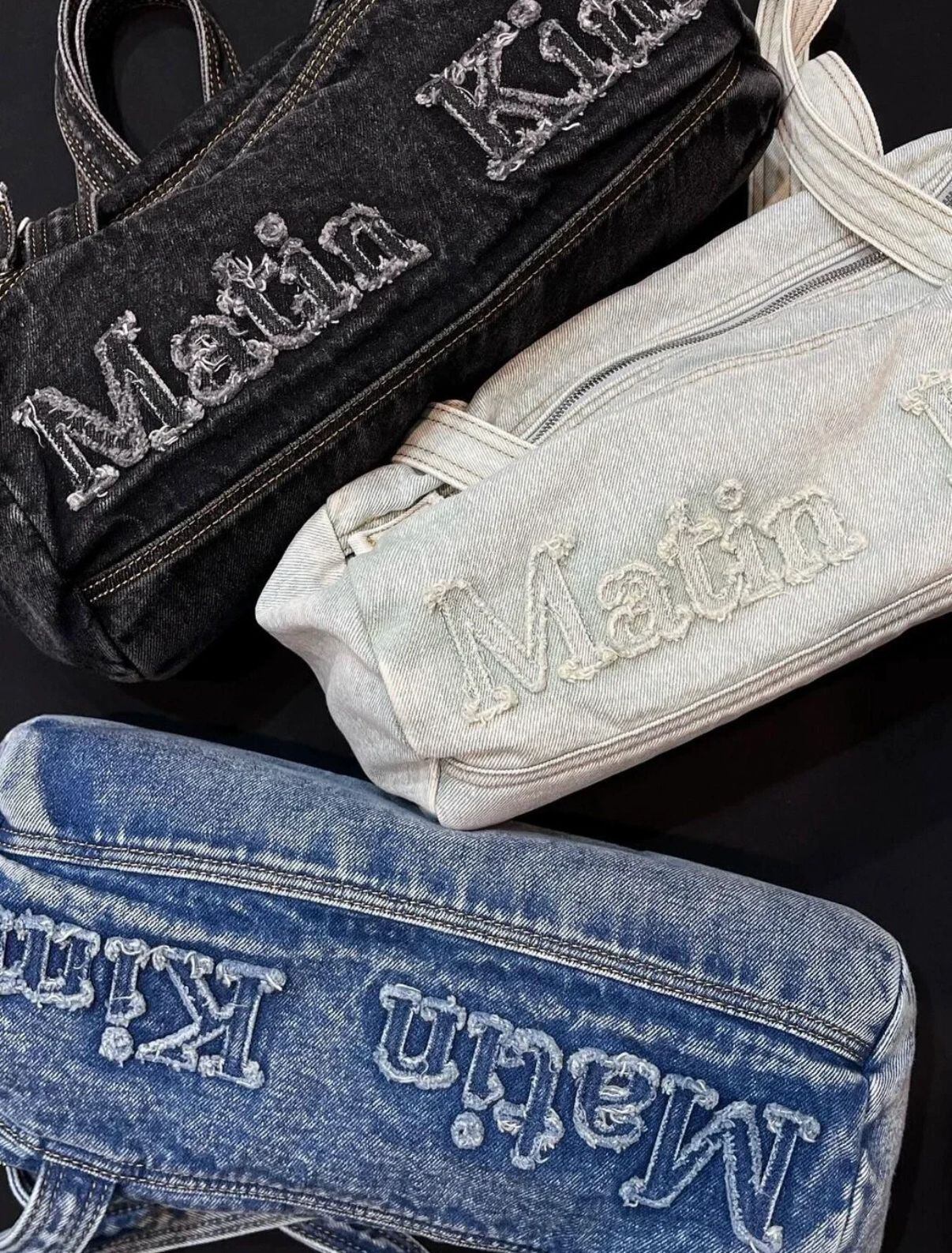新品 韓国 Matin Kim マーティンキム LOGO WASHED DENIM DUFFEL BAG デニム バッグ ハンドバッグ ショルダーバッグ レディース 【3色選択可能】