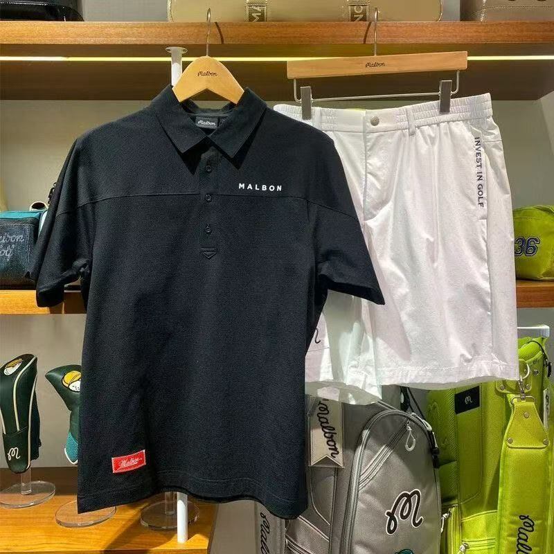 malbon golf マルボンゴルフ ポロシャツ ゴルフウェア 半袖 レディース スポーティー ゴルフ 練習用 レディース メンズ人気 通気性 吸汗速乾 ブラック ホワイト カーキ グリーン 4色