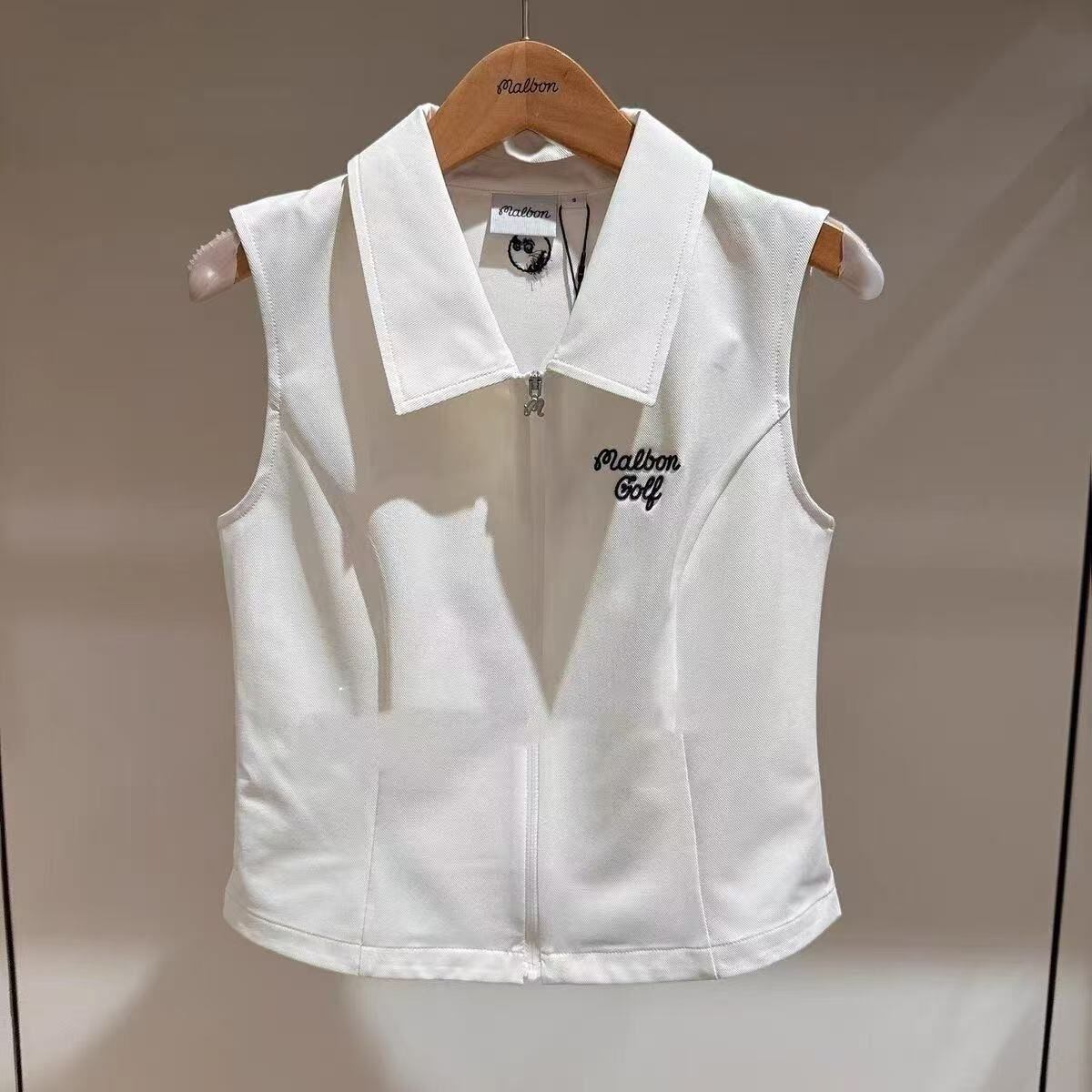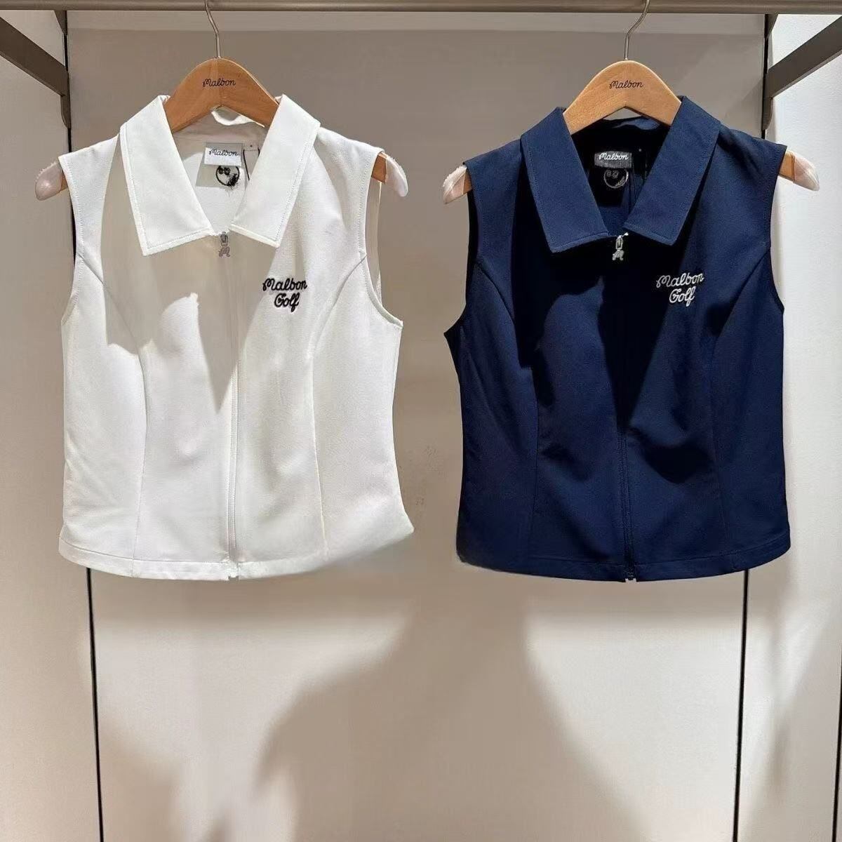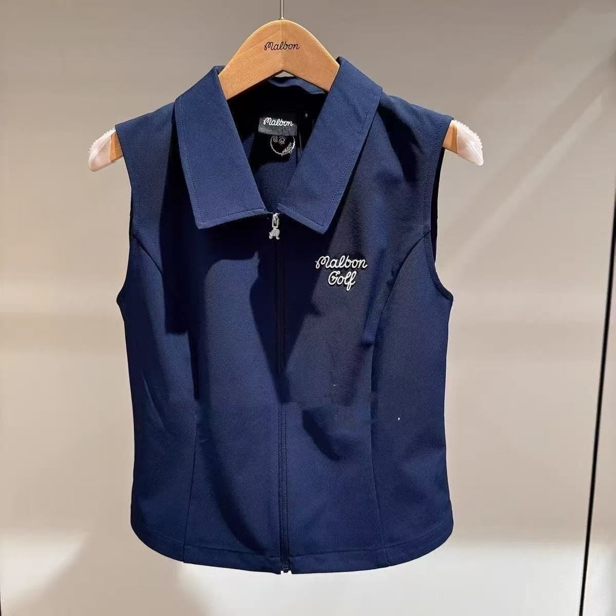 malbon golf レディース ゴルフウェア 夏用 ジップアップ ポロカラー 練習用 ノースリーブ ベスト カジュアル トップス