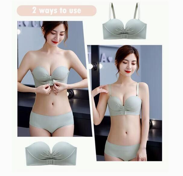 未使用 ストラップレスブラ ナイトブラ ノンワイヤー シームレス フロントホック 肩紐なし 2way ずれない 落ちない おしゃれ 滑り止め付landai01