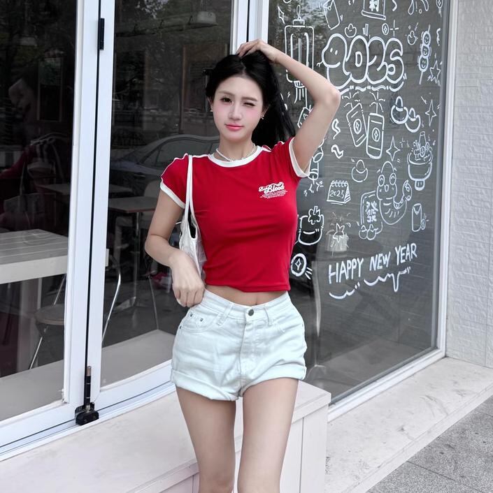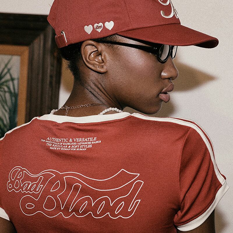 大人気 韓国 BADBLOOD バッドブラッド Tシャツ カットソー トップス レディース 半袖 おしゃれ カジュアル Vintage Logo Slim T-Shirt - Red