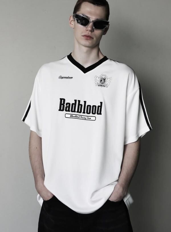 韓国人気 BADBLOOD バッドブラッド Tシャツ カットソー トップス 半袖 ゆったり 大きいサイズ 刺繍 通気性 カジュアル おしゃれ Sports Club 1/2 Tee ホワイト