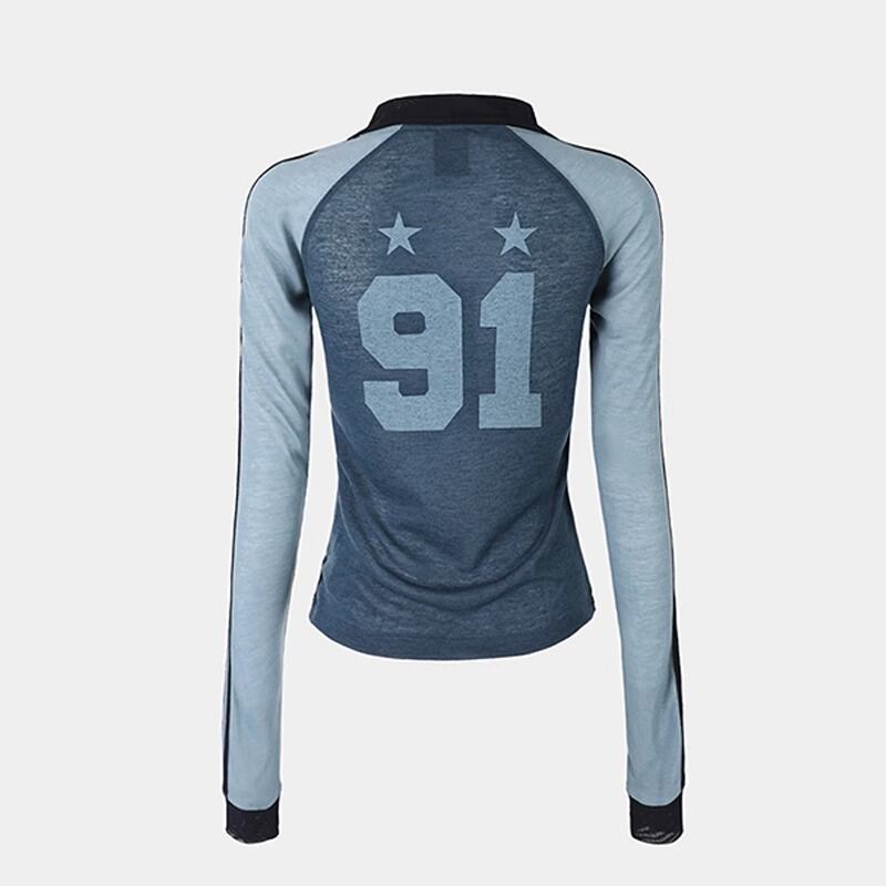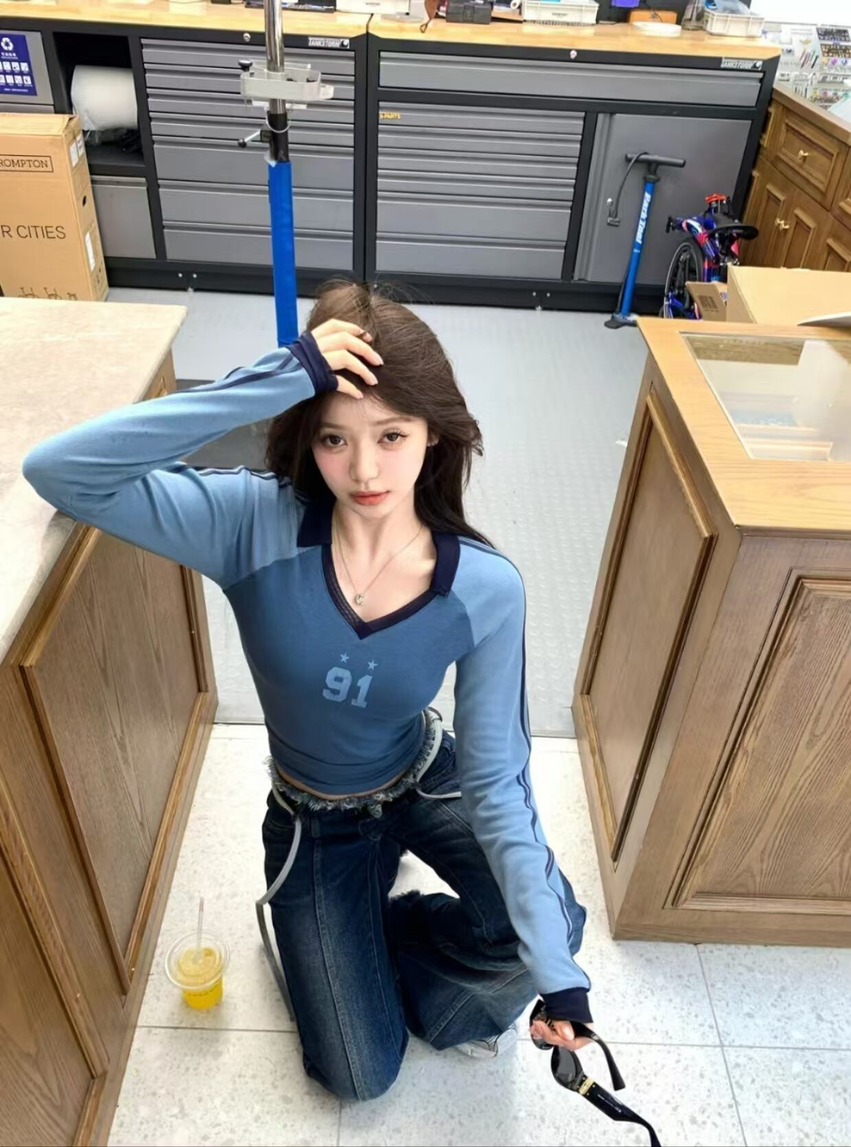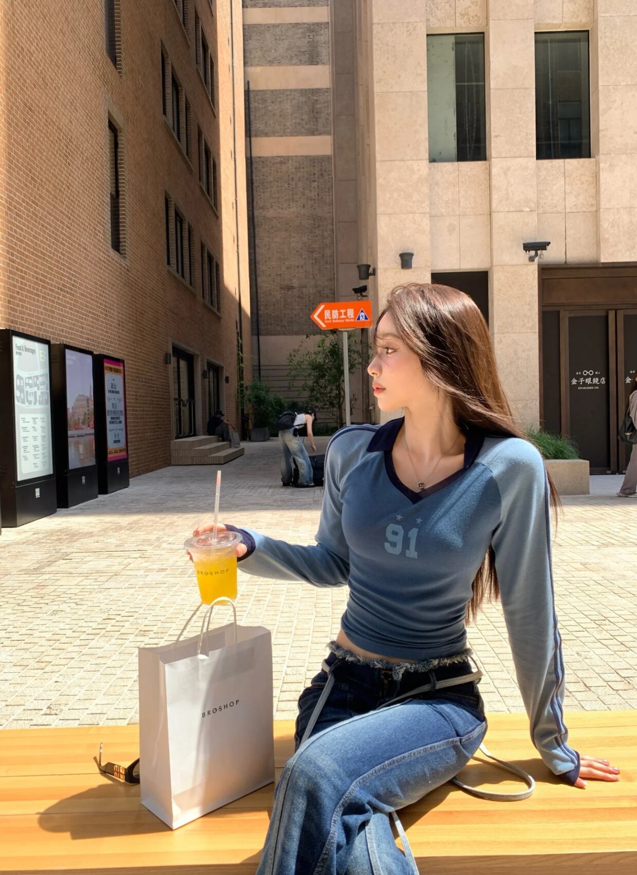 新品 BADBLOOD バッドブラッド Tシャツ カットソー トップス レディース 長袖 薄手 Vネック カジュアル 韓国人気 おしゃれ Nadja Jersey Top ダークブルー