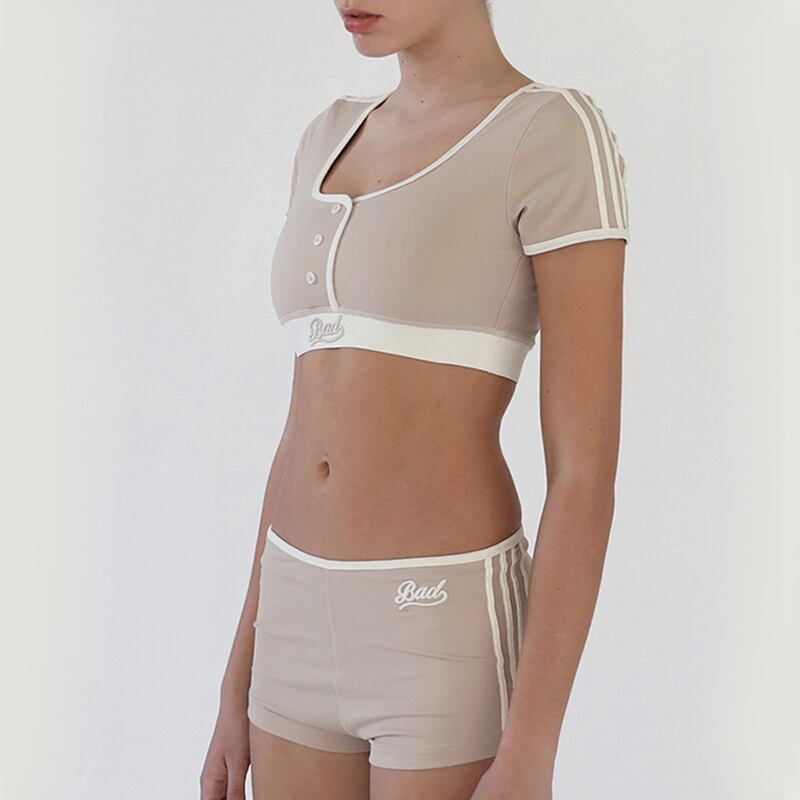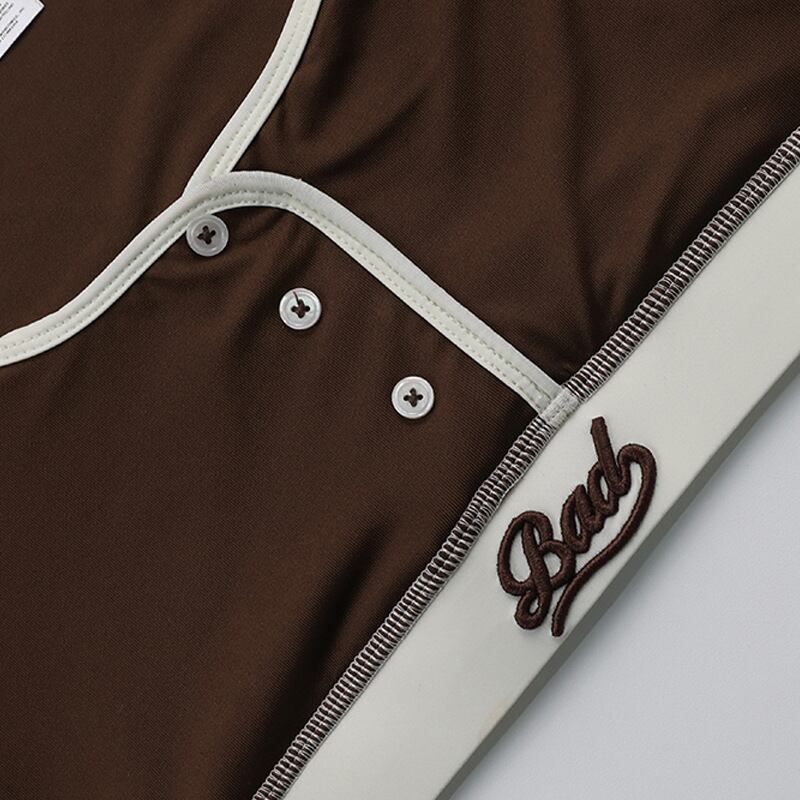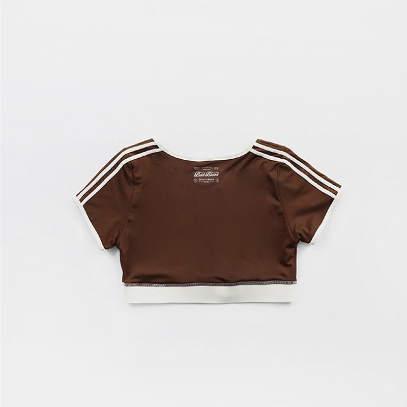 韓国人気 BADBLOOD バッドブラッド トップス レディース スウェットトップス Uネック 半袖 刺繍 カジュアル おしゃれ ブラウン