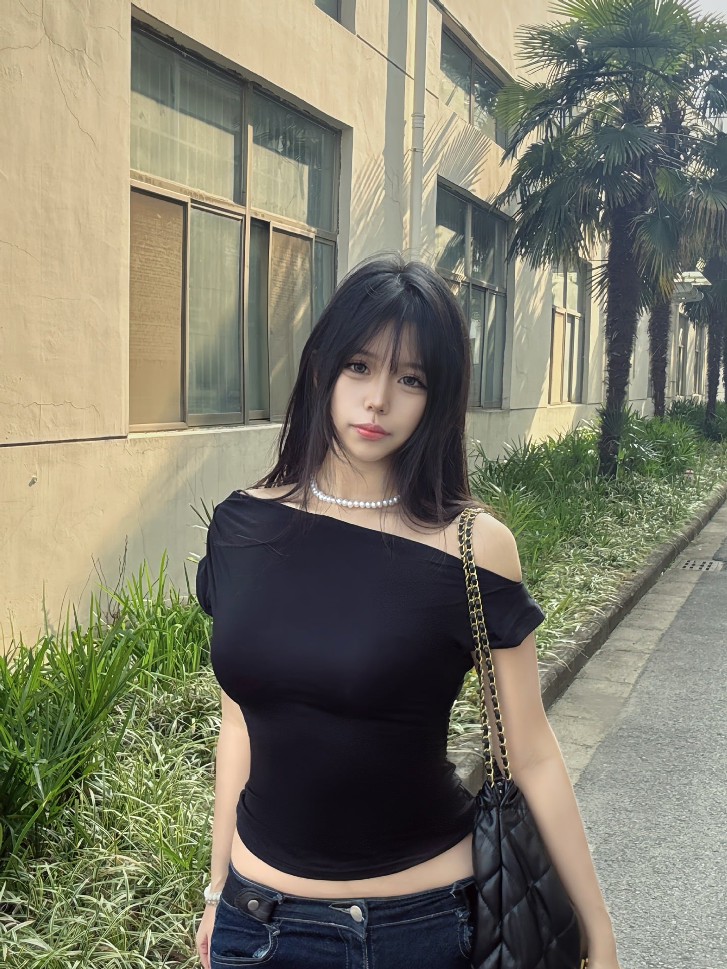 送料無料 IDEN シャツ ブラウス 半袖 レディース オフショルダー 無地 ゆったり おしゃれ 2カラー
