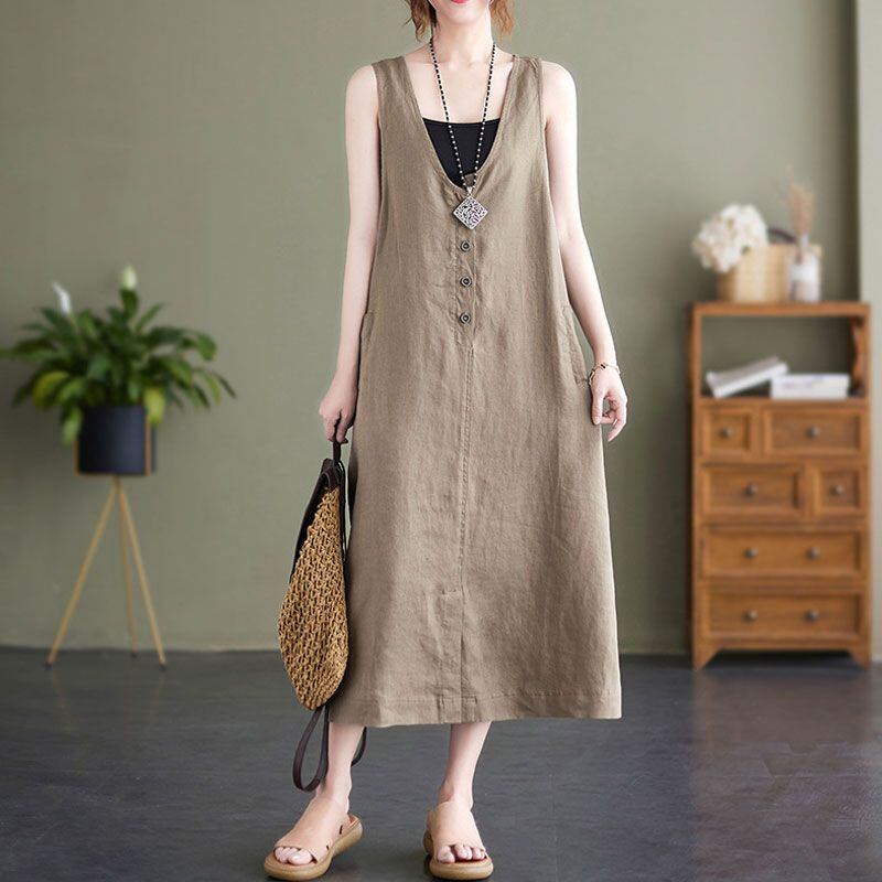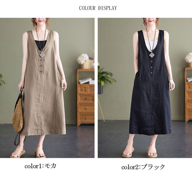 ジャンパースカート レディース 春夏 ジャンスカ Vネック ボタン ロング ワンピース ノースリーブ サイドポケット ミモレ丈 無地 プルオーバー きれいめ 着回し 綿 Aライン ベストワンピース 通勤 コーデ オフィス 仕事 フォーマル 抜け感 大人 ナチュラル 洗える beibei02