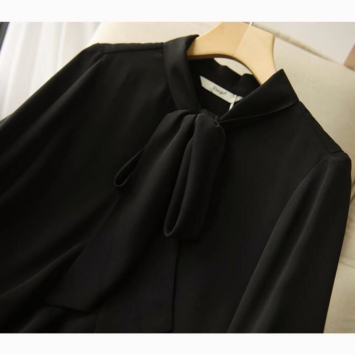 ボウタイブラウス ブラウス シャツ リボン 長袖 バルーン袖 バルーンスリーブ ボウタイ 無地 オフィスカジュアル きれいめ 通勤 おしゃれ 上品 韓国 ファッション バルーン袖リボンブラウス 秋 秋服 春 フォーマル 白 黒 オフィス cbrx0001