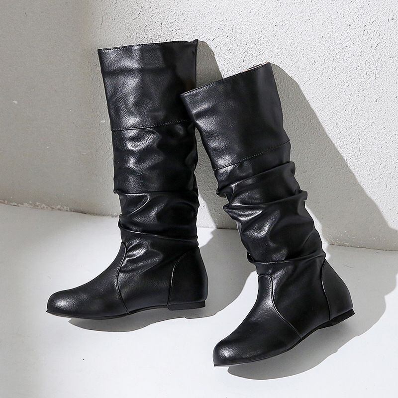 レディース ルーズブーツ ブーツ レディース くしゅくしゅブーツ くしゅくしゅ PU 防寒 ミドル ぺたんこ 合成皮革 歩きやすい 履きやすい 脱ぎやすい mlxz141