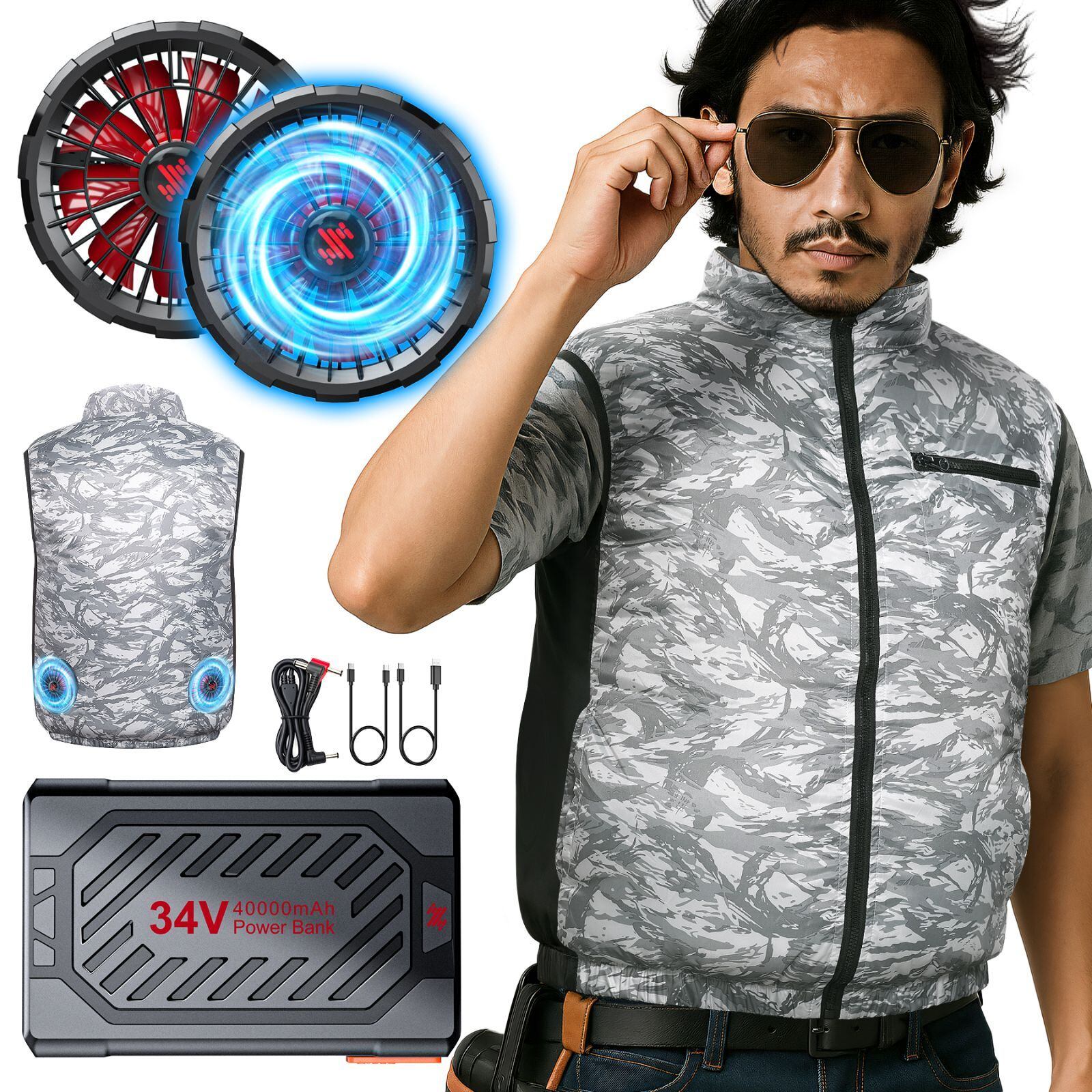 [Vivisan] 2025新設計 34V超高出力 · 体感-16℃ 空調作業服 ベスト ファン付き作業服 日本製ブラシレスDCモーター 16~34V出力 暴風 強力 風量200%UP ファン付きベスト 冷却服 UVカット 40000mAh 熱中症対策 男女