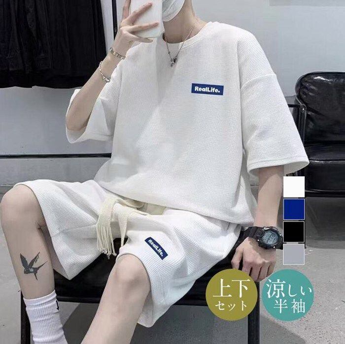 上下セット メンズ セットアップ 半袖シャツ ウエストゴム ショートパンツ ルームウェア 部屋着 普段着 運動着 カジュアル かっこいい ゆったり 快適 涼しい 韓國ファッション 夏