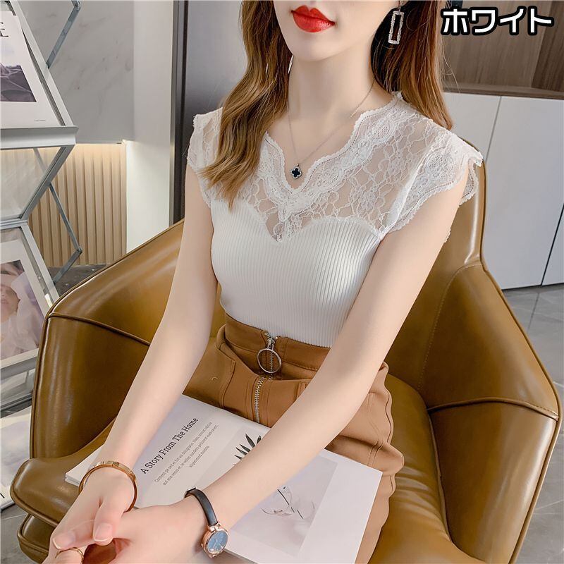 未使用 サマーニット レディース ノースリーブ タンクトップ レース シースルー Vネック インナー トップス コーデ カジュアル シンプル おしゃれ 大人 女性 通勤 オフィス OL 無地 春 夏 ファッションskwhymz02
