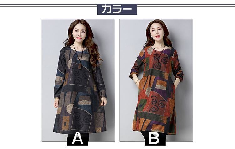 ワンピース チュニック 春 秋 長袖 大人 レディース 可愛い 森ガール エスニック ゆるかわ プルオーバー 膝丈 長袖 大きいサイズ 大人 ワンピ ミディアム ミディ レトロ 体型カバー ひざ丈 ゆったり きれいめchaoliu15