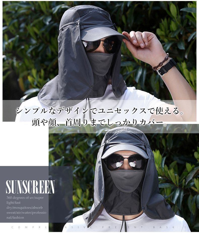 日除け帽子 360度日除けハット 帽子 レディース メンズ サファリハット 熱中症対策 紫外線対策 大人 女性 男性 男女兼用 ユニセックス キャップ ハット ネックガード フェイスガード 3way ツバ広 maisang02