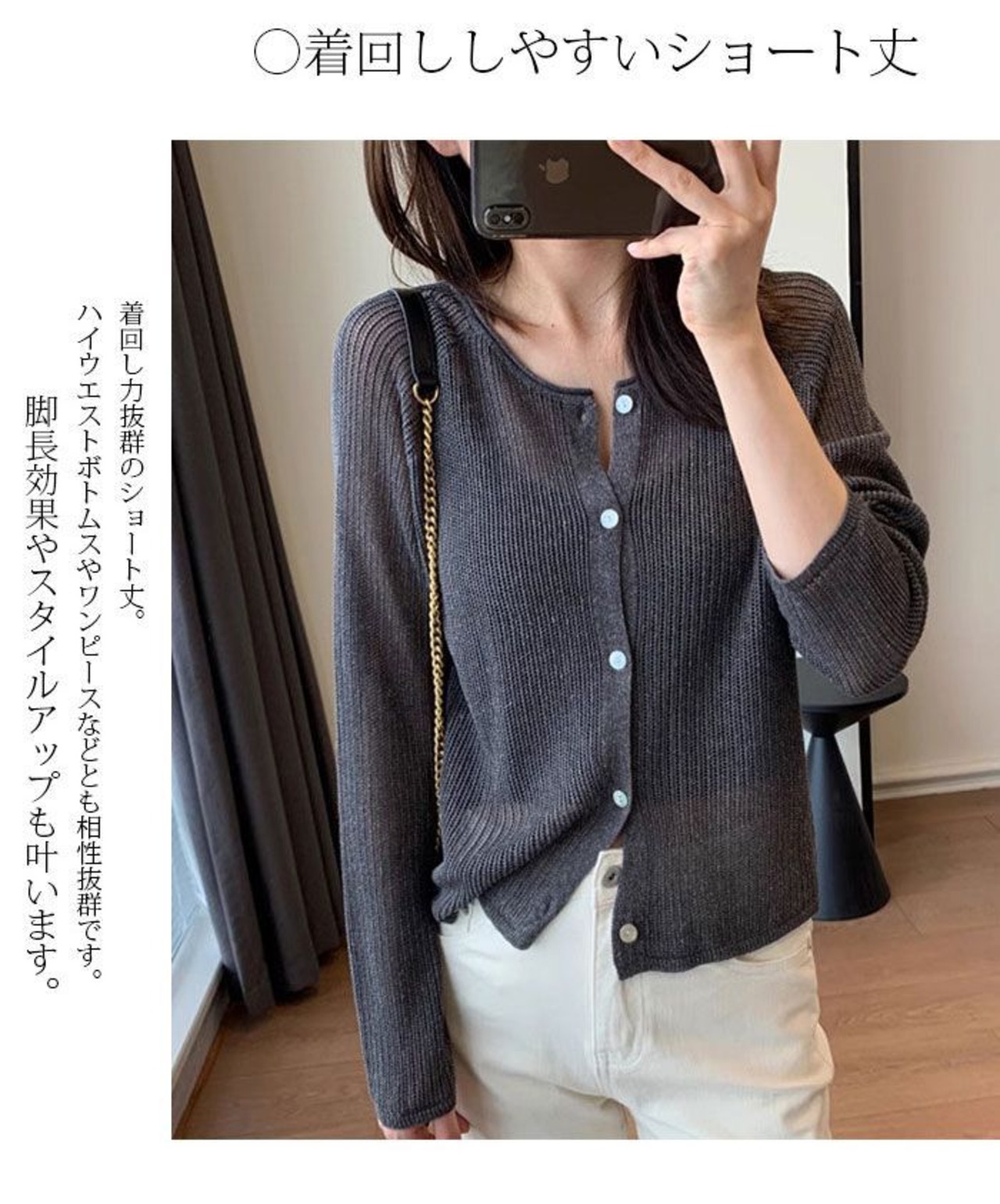 夏の日差しや、冷房対策に便利な超薄手タイプのカーディガン。